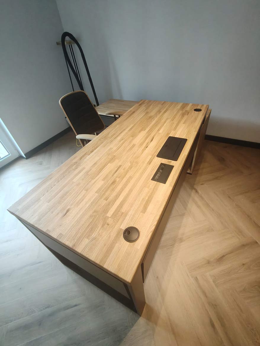 Dla firmy Voltex w Świdnicy przygotowaliśmy narożne biurko z dużym kontenerem wyposażonym w pojemne szuflady. Zestaw uzupełnia wygodne, ergonomiczne krzesło, które razem tworzy praktyczne i komfortowe miejsce do codziennej pracy. Proste rozwiązanie, które dobrze sprawdza się w biurze.