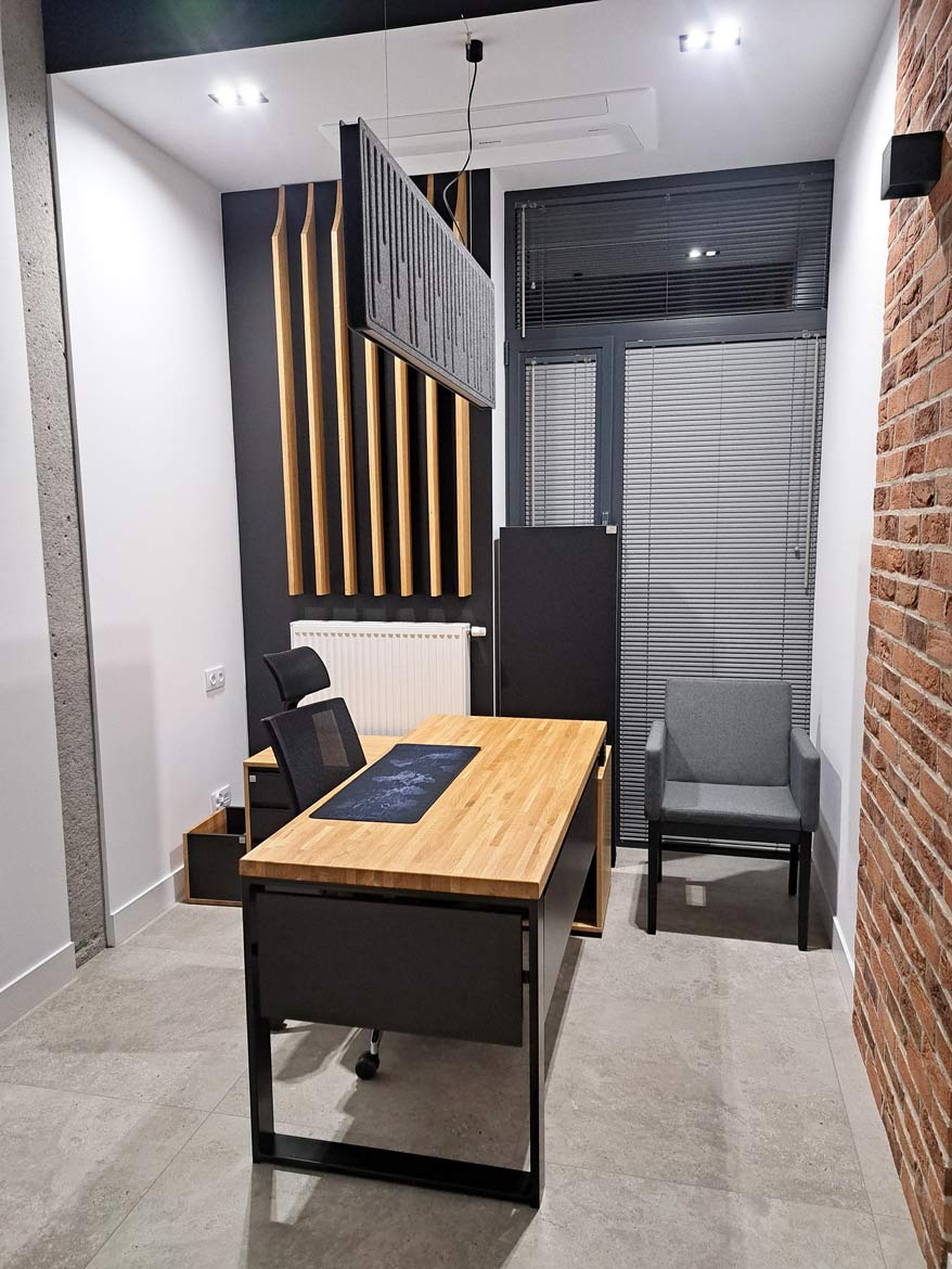 Biuro z cegłą umeblowane dla Pana Krzysztofa