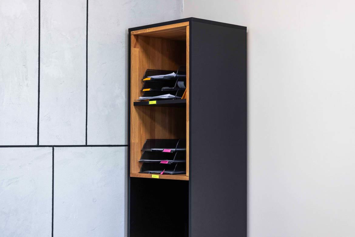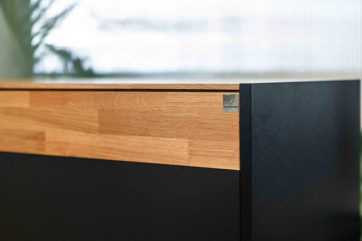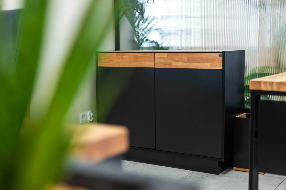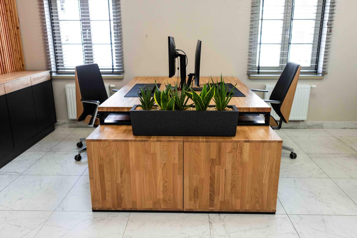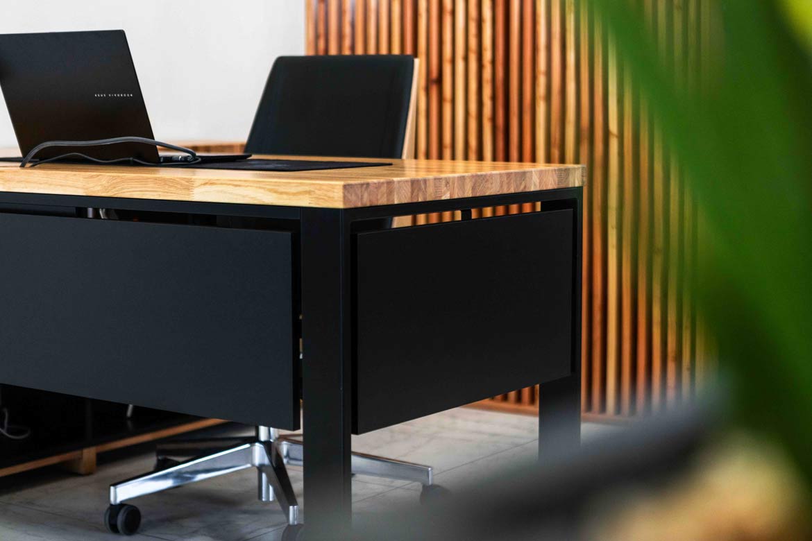 Nie bez znaczenia jest fakt, że Katalpa i Deerhorn dzielą podobne podejście do materiału, jakim jest drewno — z poszanowaniem natury, z myślą o trwałości i ponadczasowym wyglądzie. Połączenie naszych mebli z ich drewnianą tożsamością stworzyło wyjątkowe biuro, w którym wszystko ze sobą współgra.