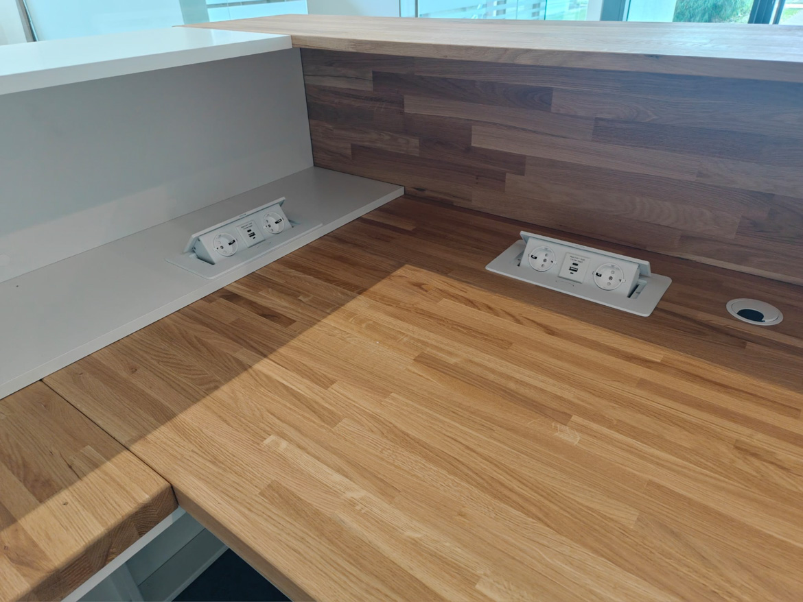 Projekt dopasowaliśmy do układu pomieszczenia i codziennej pracy recepcji. Zależało nam na tym, żeby wszystko było wygodne w użytkowaniu – zarówno dla personelu, jak i osób odwiedzających gabinet.