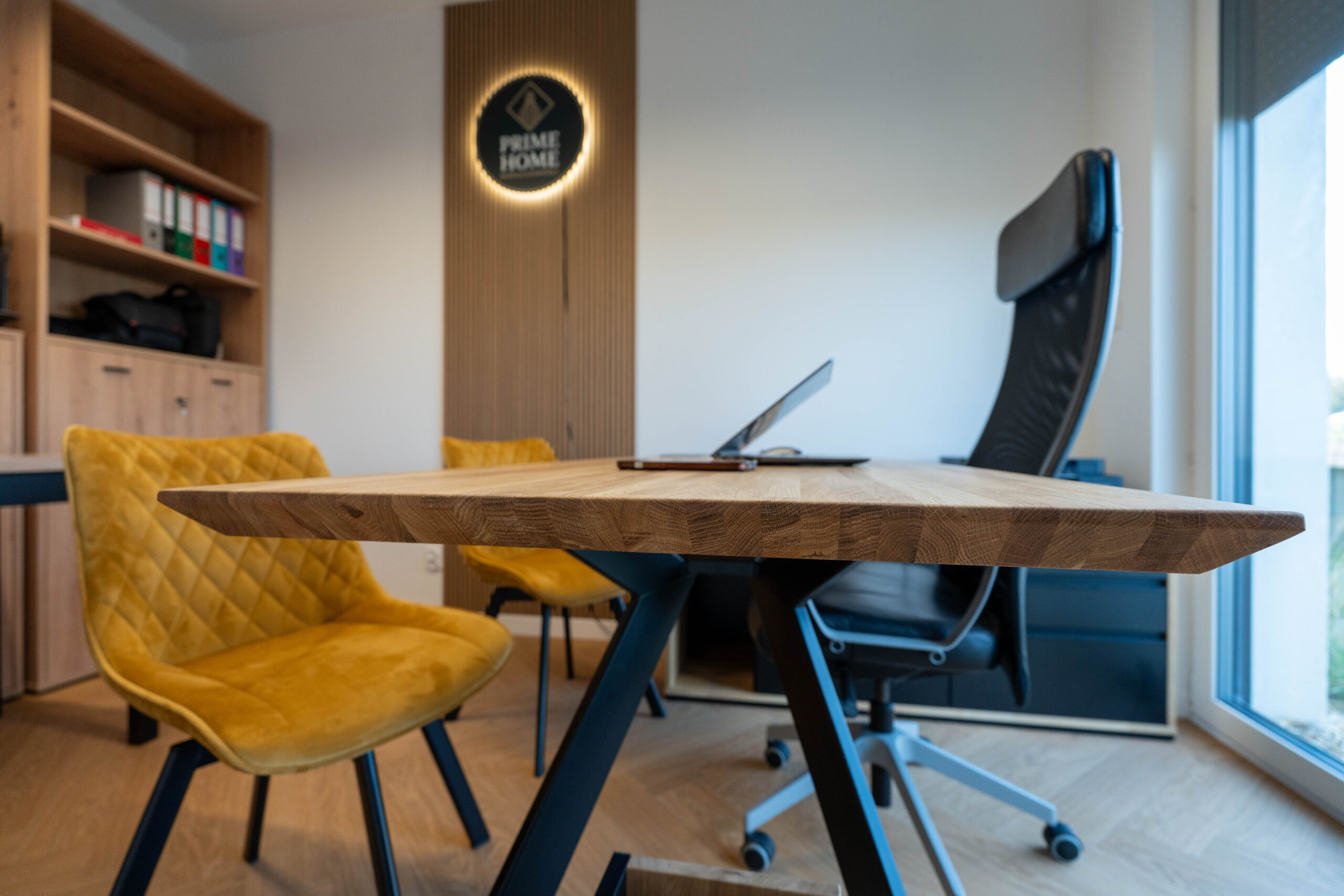 Wnętrze biura Prime Home zyskało nowy charakter dzięki meblom premium od Deerhorn. Ciepłe odcienie drewna, czarne detale i wyraziste linie dodają elegancji do codziennego kontaktu z klientem. Prime Home to kolejna, wspaniała firma, która dołączyła do tysięcy naszych klientów.