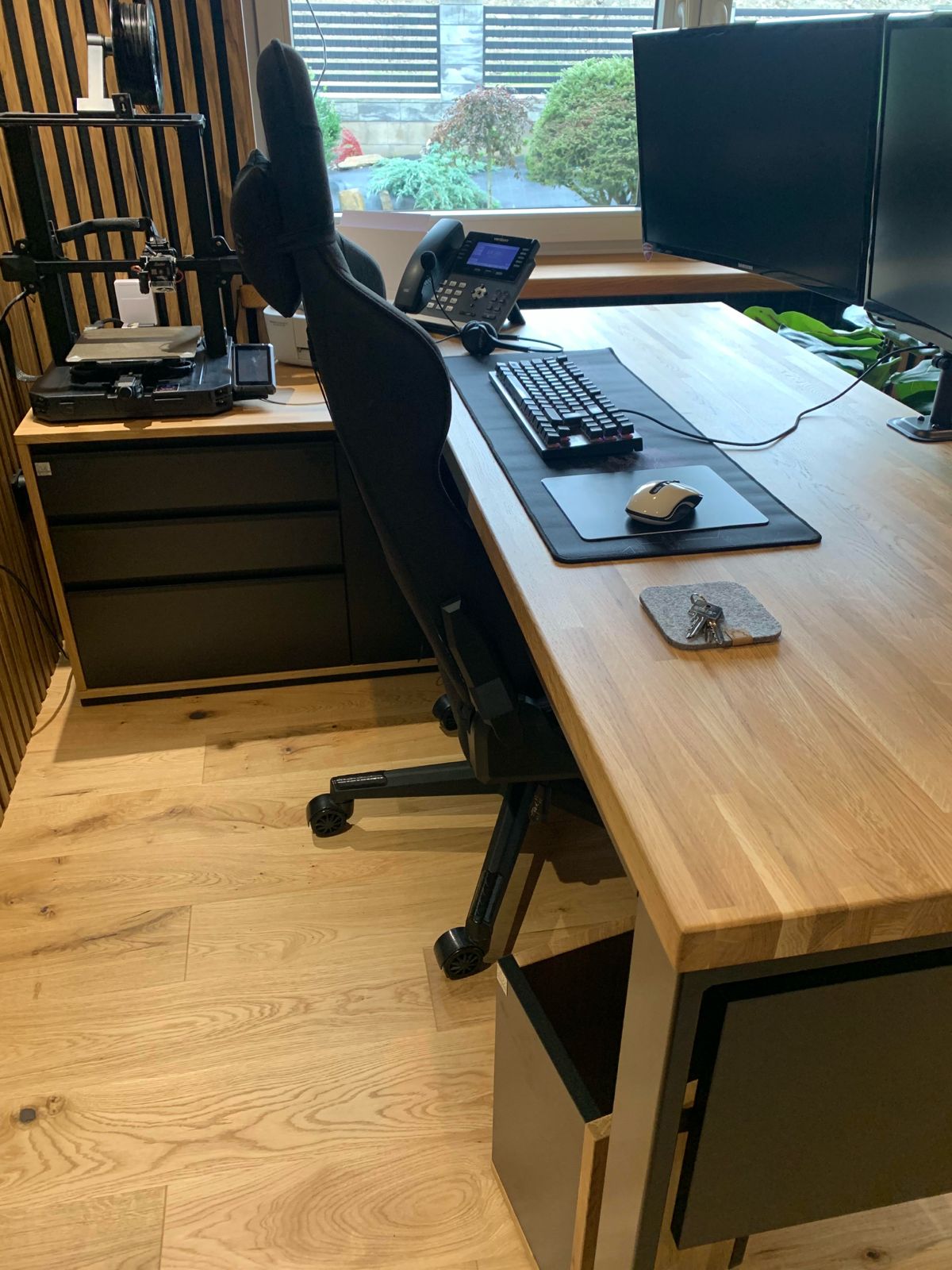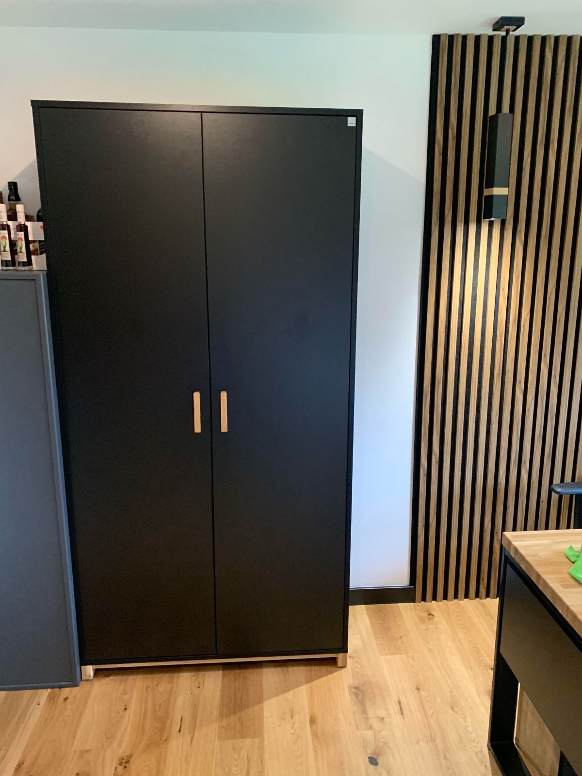 W Czerwiennem powstała kolejna realizacja gabinetu z meblami Deerhorn. Minimalistyczne, czarne bryły w połączeniu z naturalnym drewnem idealnie wpasowały się w klimat domowego biura. Funkcjonalność i estetyka w najlepszym wydaniu – dokładnie tak, jak lubimy. Watro zwrócić uwagę na piękne lamele na ścianie.