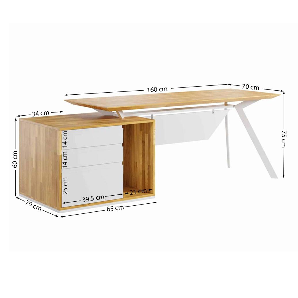 Biurko z drewnianym blatem i metalem charakteryzuje się niezwykłym kształtem stelaża. Zastosowano również podcięcie blatu pod kątem 45°, co daje fenomenalny efekt. Tak, aby ułatwić otwieranie biurowa szafa z półkami na segregatoryregał biurowy z półkami, a także komoda do biura i domu posiadają fronty z podcięciem, które dostosowaliśmy – w szczególności – do wymagań kobiet. Każda z tych zmian czyni poszczególny produkt unikatowym, co jest dużym atutem naszej firmy.