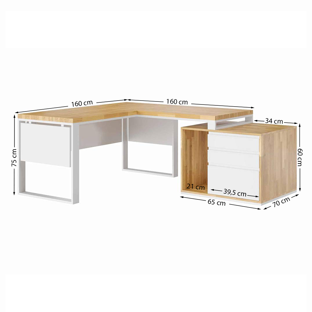 Funkcjonalne i eleganckie białe biurko narożne z kontenerkiem i szufladami to wszechstronne rozwiązanie, które sprawdzi się zarówno w profesjonalnym środowisku biurowym, jak i w domowym zaciszu.