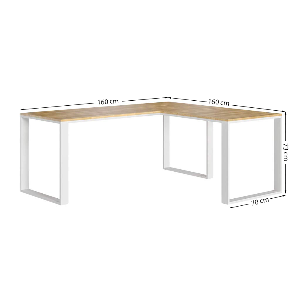 Biurko narożne z płaskim, drewnianym blatem „loft slim” 160×70 cm