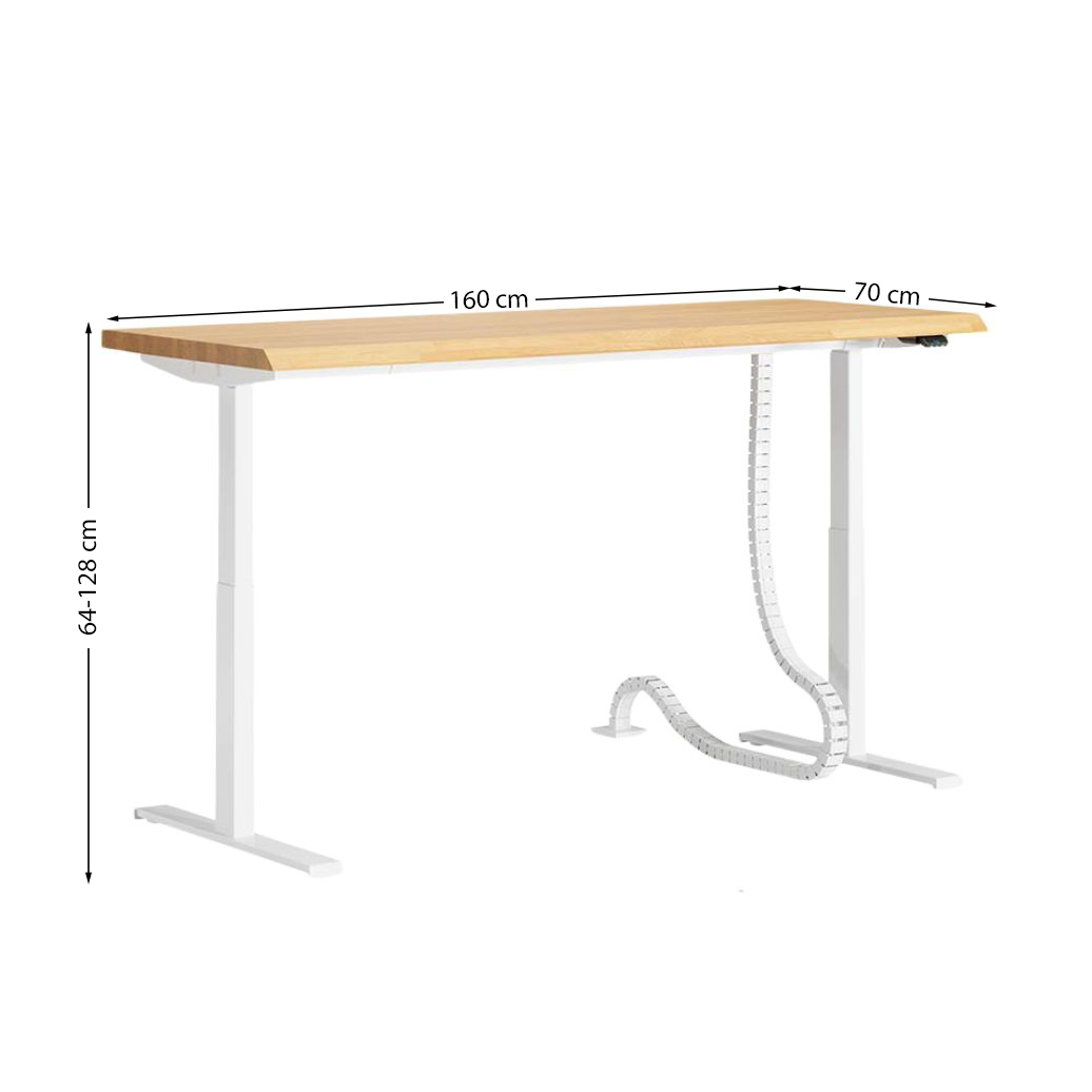 Białe biurko regulowane 160x70cm. Blat ergonomiczny