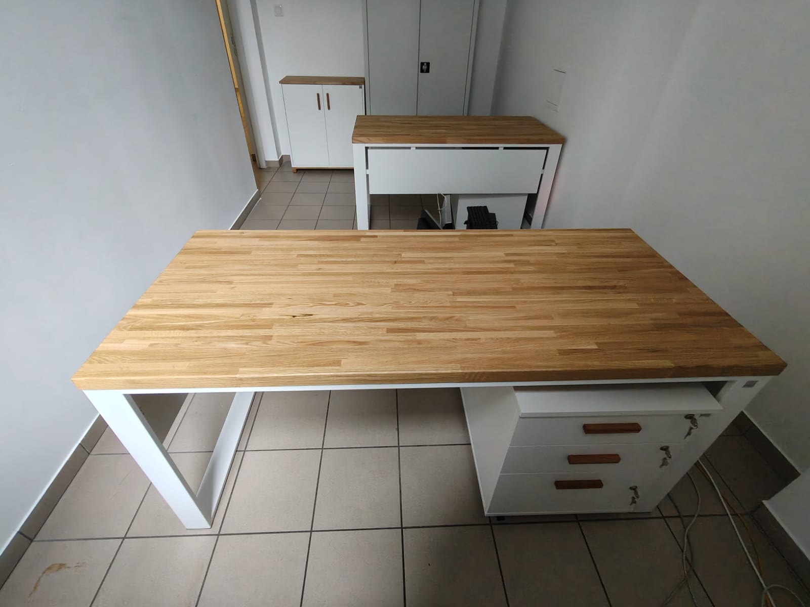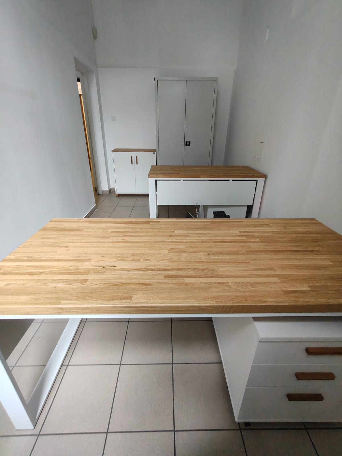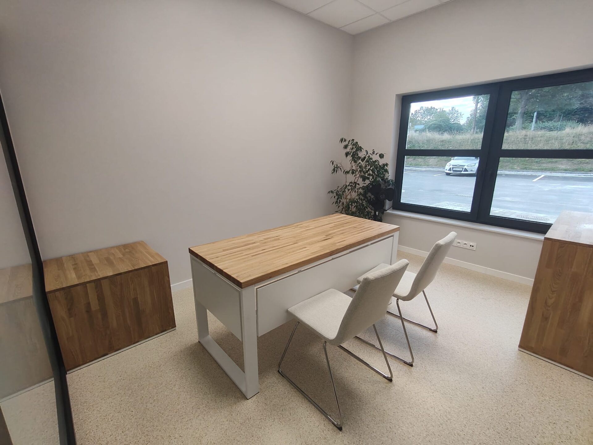 To biurko ma w sobie fajny balans – jest proste, ale nie nudne. Jasny blat ociepla przestrzeń, a całość wygląda lekko i uporządkowanie. Daje komfort do pracy i rozmów, bez poczucia „biurowego ciężaru”. Takie miejsce, przy którym pracuje się naturalnie i bez spiny.