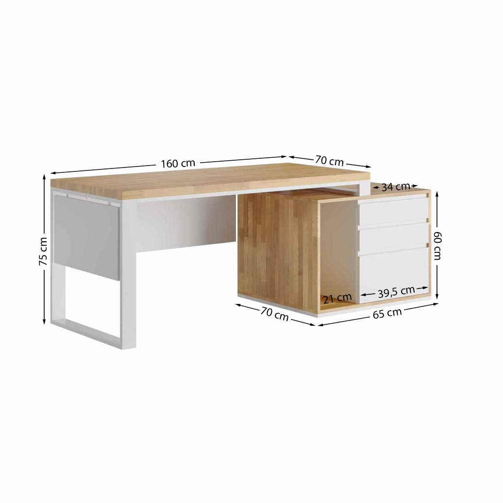 Białe biurko z drewnianym blatem loft office plus Prawe