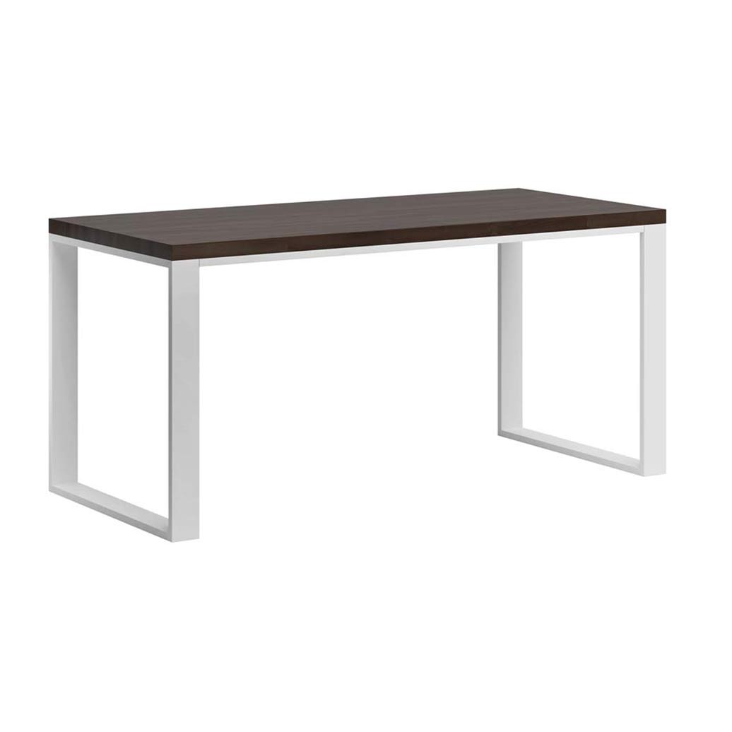 Biurko białe z drewnianym, brązowym blatem 160×70 – elegancja natury