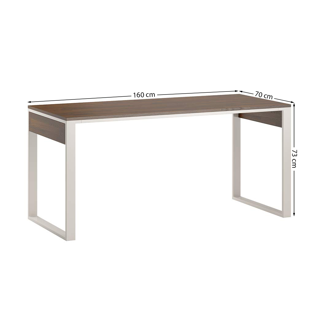 Z przestronnym blatem o długości 160 cm, zapewnia mnóstwo miejsca na Twój komputer, dokumenty i wszystkie niezbędne akcesoria biurowe. Solidna, metalowa konstrukcja nie tylko gwarantuje stabilność, ale dodaje też nutę industrialnej elegancji, idealnie wpasowując się w nowoczesne przestrzenie biurowe.