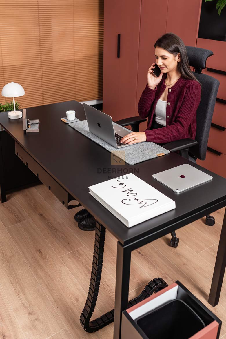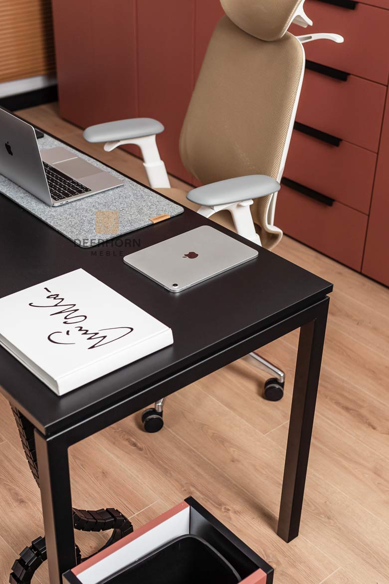 Minimalistyczna forma sprawia, że biurko dobrze wpisuje się w różne wnętrza – od open space’ów po niewielkie gabinety. Może służyć jako pojedyncze stanowisko albo element większego układu.