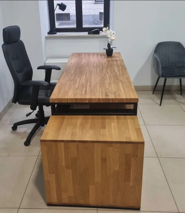 • wymiary blatu: 180×70 cm plus kontenerek. Długość całkowita biurka 214 cm