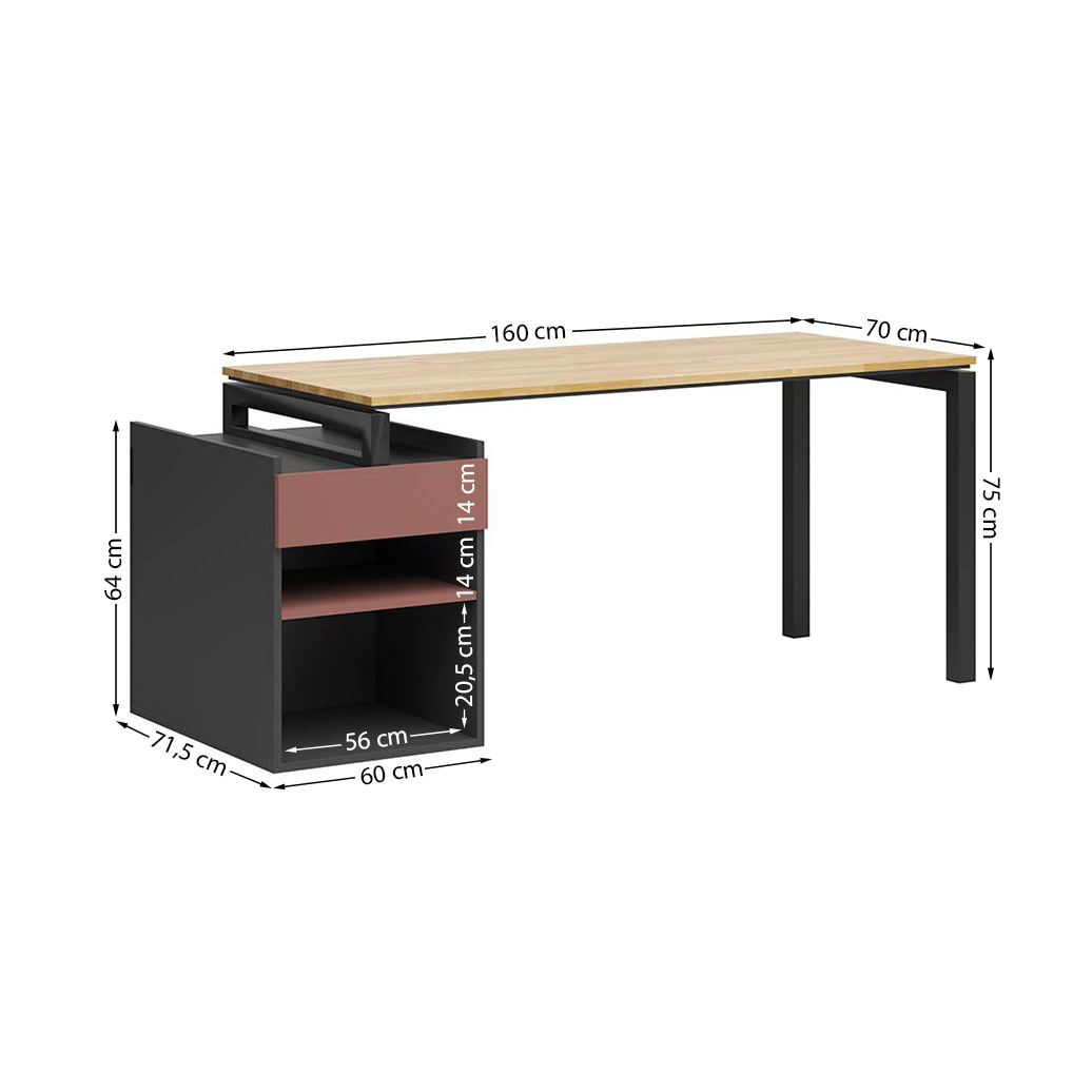 Biurko do pracy z komputerem i kontenerem oraz szufladą