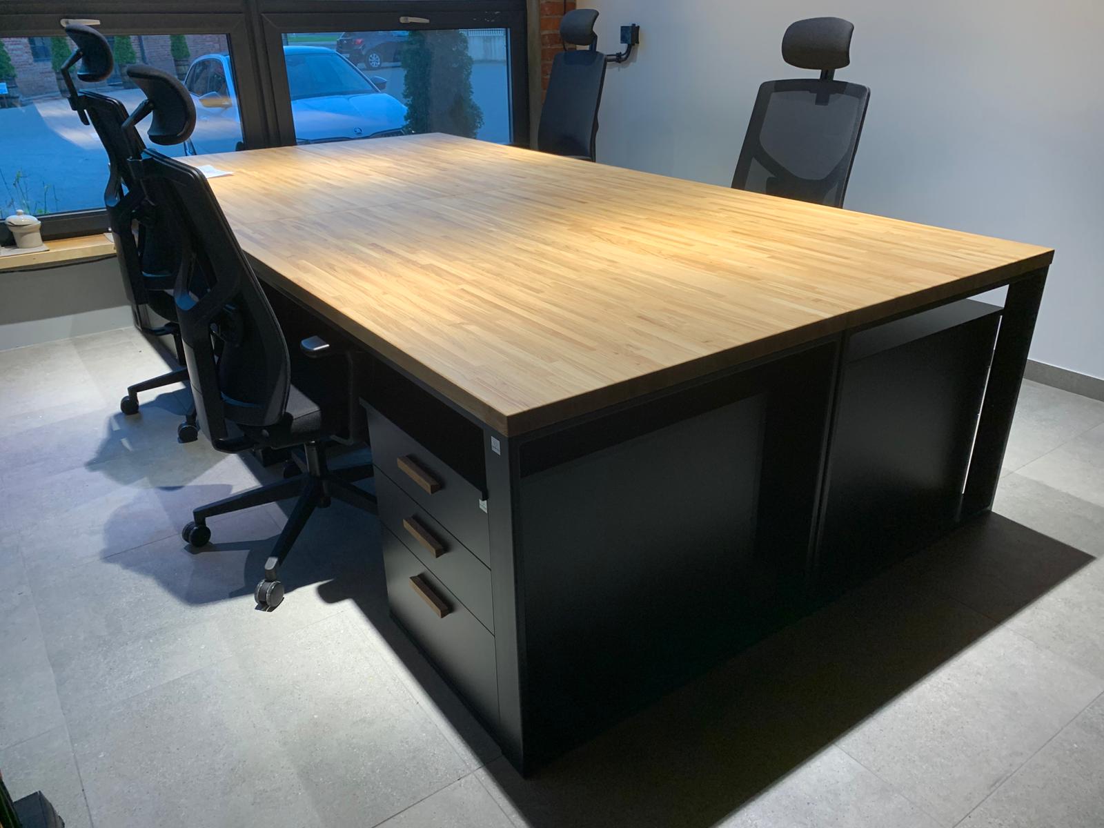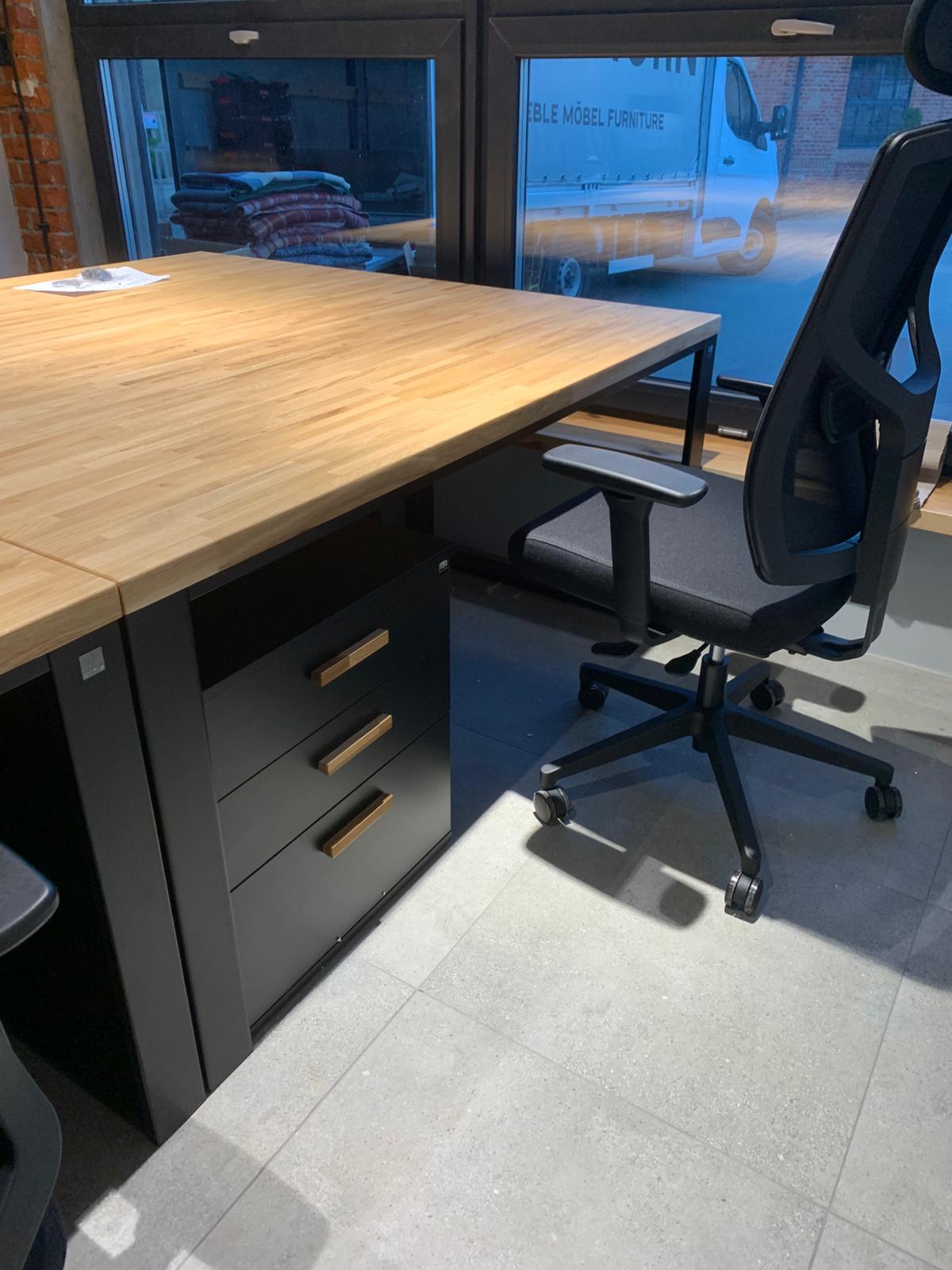 1. Biurko na 4 stanowiska robi świetne wrażenie. Duża, solidna konstrukcja daje komfort pracy dla całego zespołu, a każdy ma swoją wygodną przestrzeń. Wygląda nowocześnie, jest stabilne i idealnie sprawdza się w biurze zespołowym. Bardzo udane rozwiązanie.