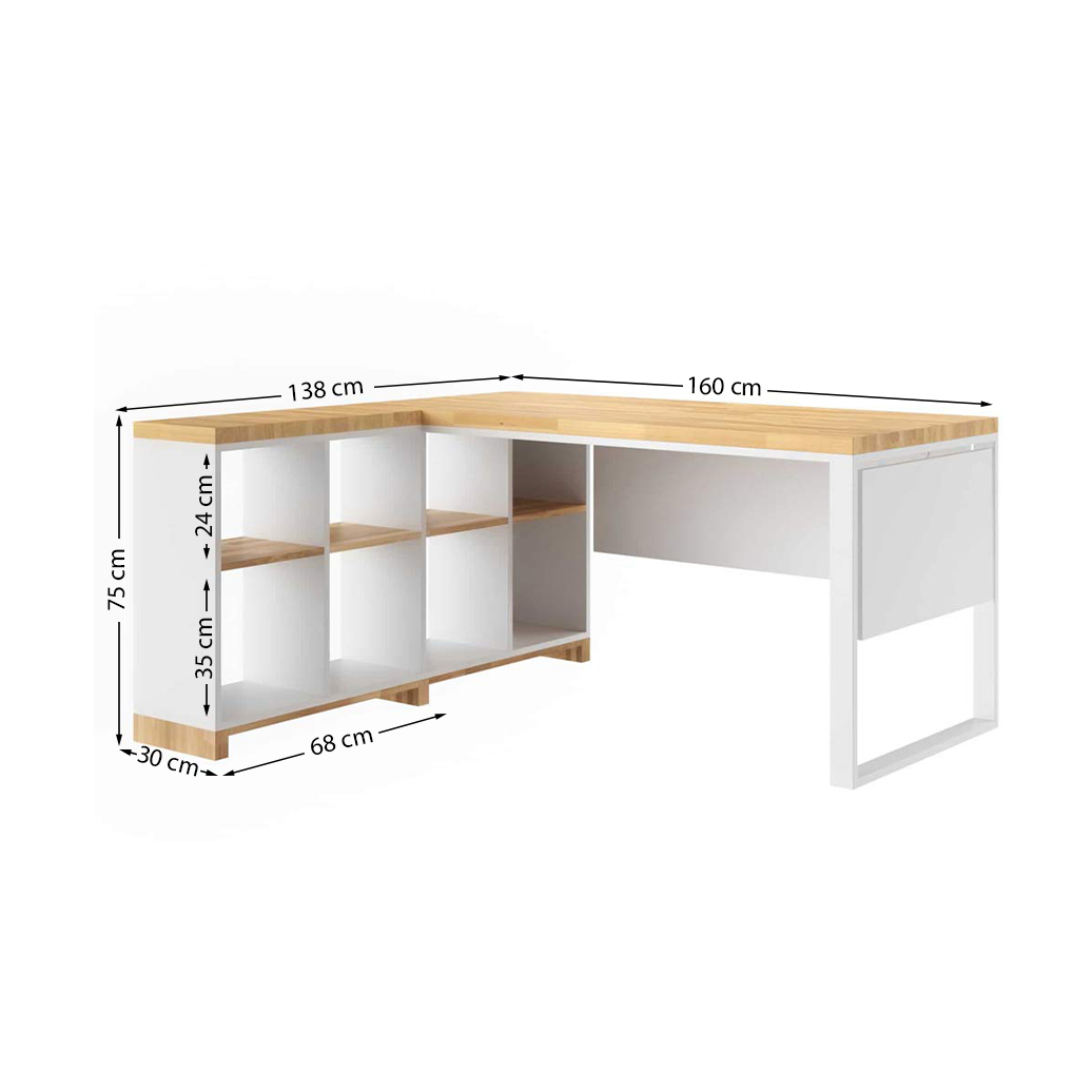 Biurko funkcjonalne narożne z osłoną, drewno i metal, lewe