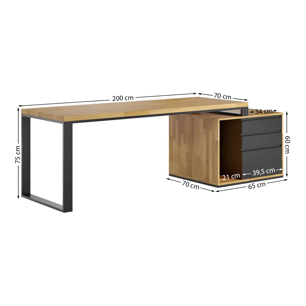Biurko loft office plus z drewnianym blatem 200x70cm