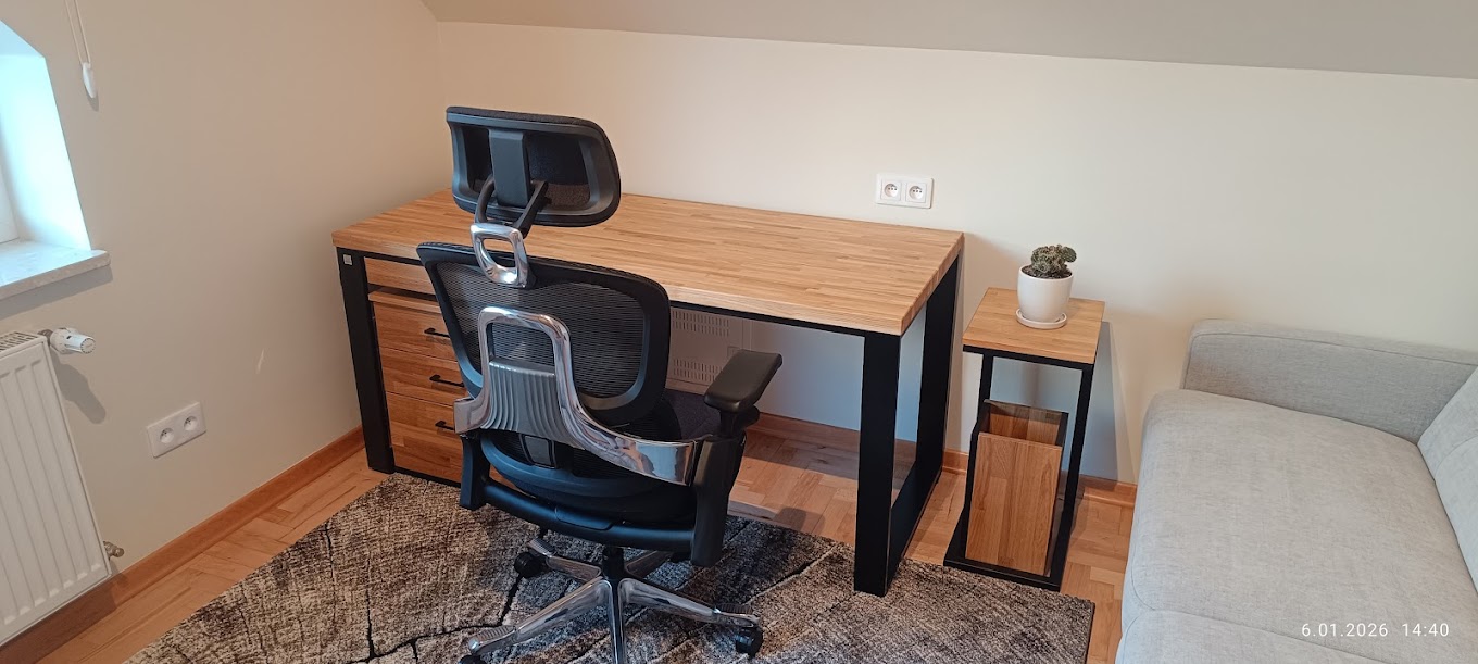 Biurko jest solidne i bardzo wygodne w użytkowaniu. Ma dużo miejsca do pracy, stabilną konstrukcję i estetyczny wygląd. Sprawdza się idealnie na co dzień — dokładnie to, czego potrzebowaliśmy.