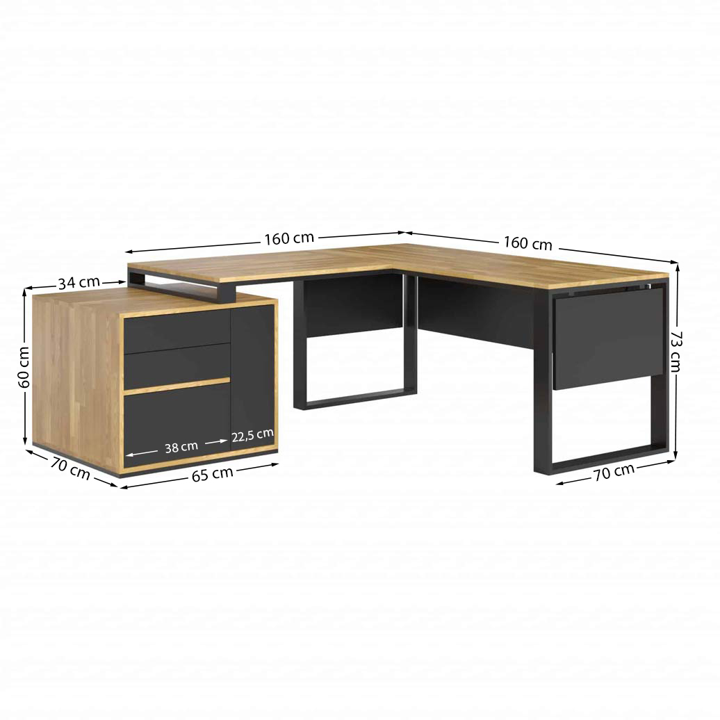 Biurko narożne z płaskim blatem loft office slim