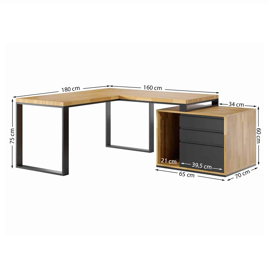 Biurko narożne loftowe duże 180×70 Loft Office Plus