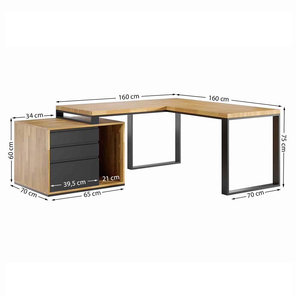 Biurko narożne Loft Office Plus bez blend, osłon pod blatem. 160x70cm