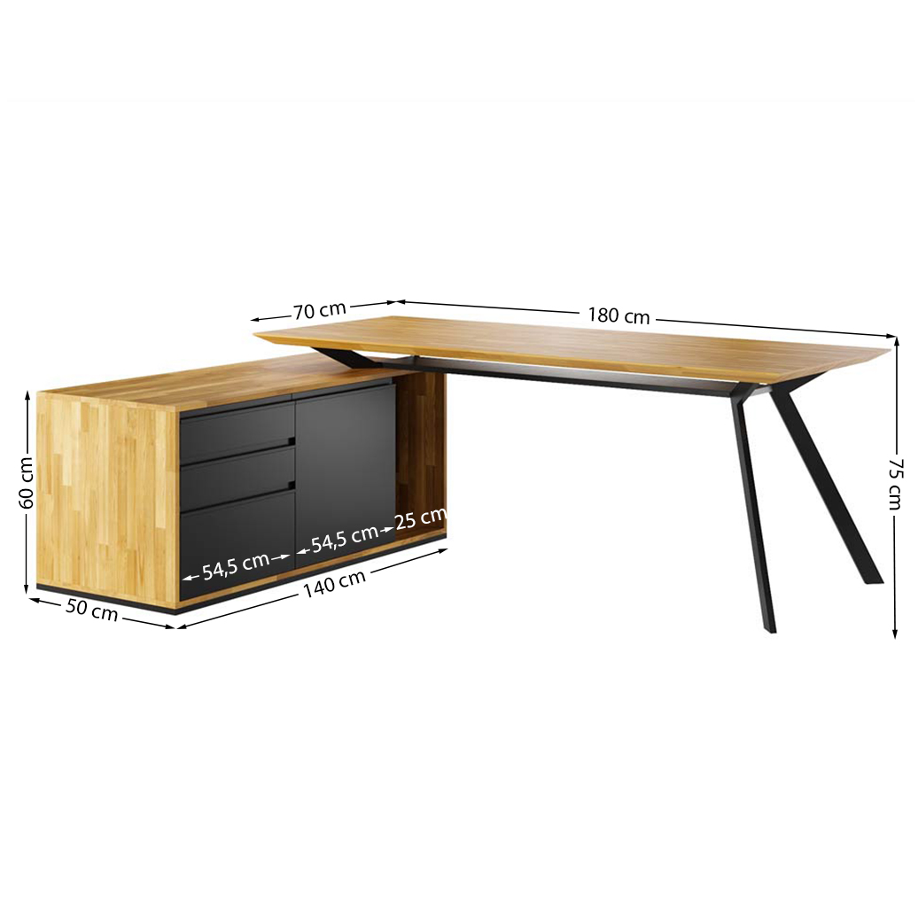 Biurko „Future Active” łączy elegancję drewna dębowego ze stalową konstrukcją, zapewniając trwałość i unikalny wygląd. Blat podcięty pod kątem 45° i ukośne nogi nadają mu nowoczesny, dynamiczny charakter. Dzięki starannie dobranym olejom i woskom, drewno zachowuje swoją naturalną fakturę i odporność na plamy.