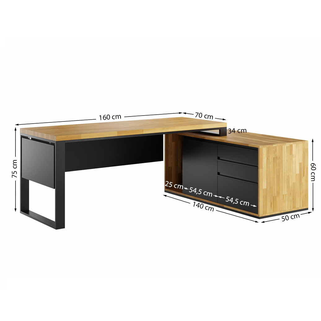 Biurko narożne z szufladami nowoczesne loft z płytą pod blatem, prawe 160×70