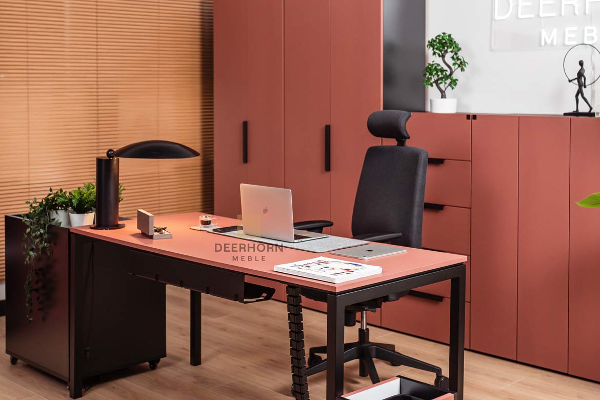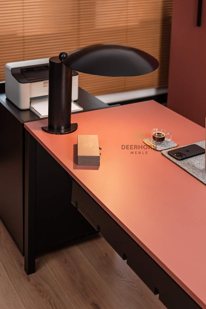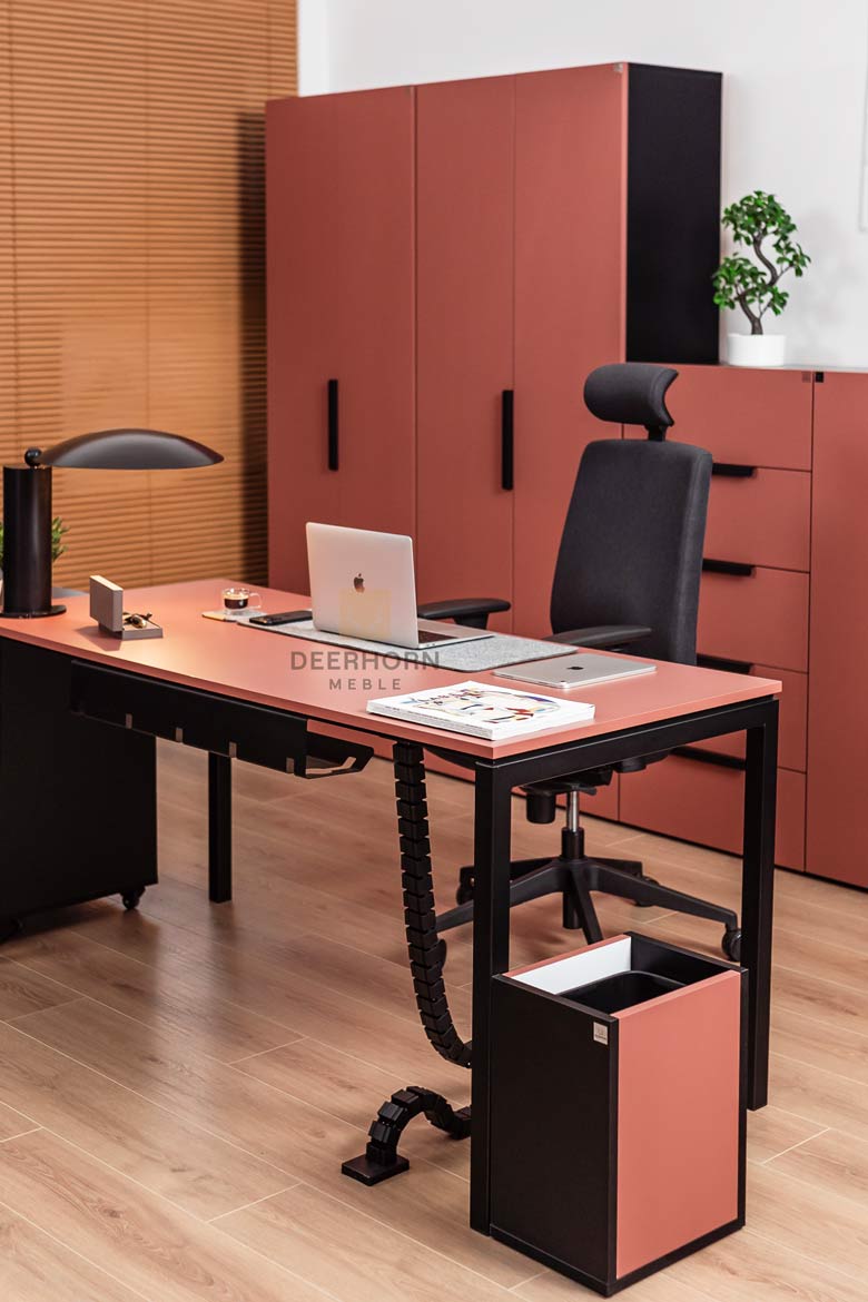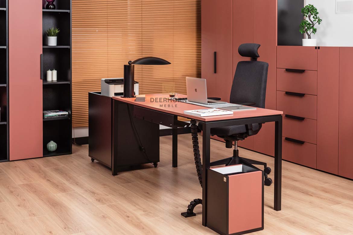 Porządek na biurku to spokój w głowie. Dlatego to biurko z kolekcji Corporate zostało zaprojektowane tak, aby Twoja praca była wygodniejsza i lepiej zorganizowana. Ceglasty blat wnosi do biura świeżość i energię, a solidna czarna podstawa sprawia, że zyskujesz pewność stabilnego miejsca pracy.