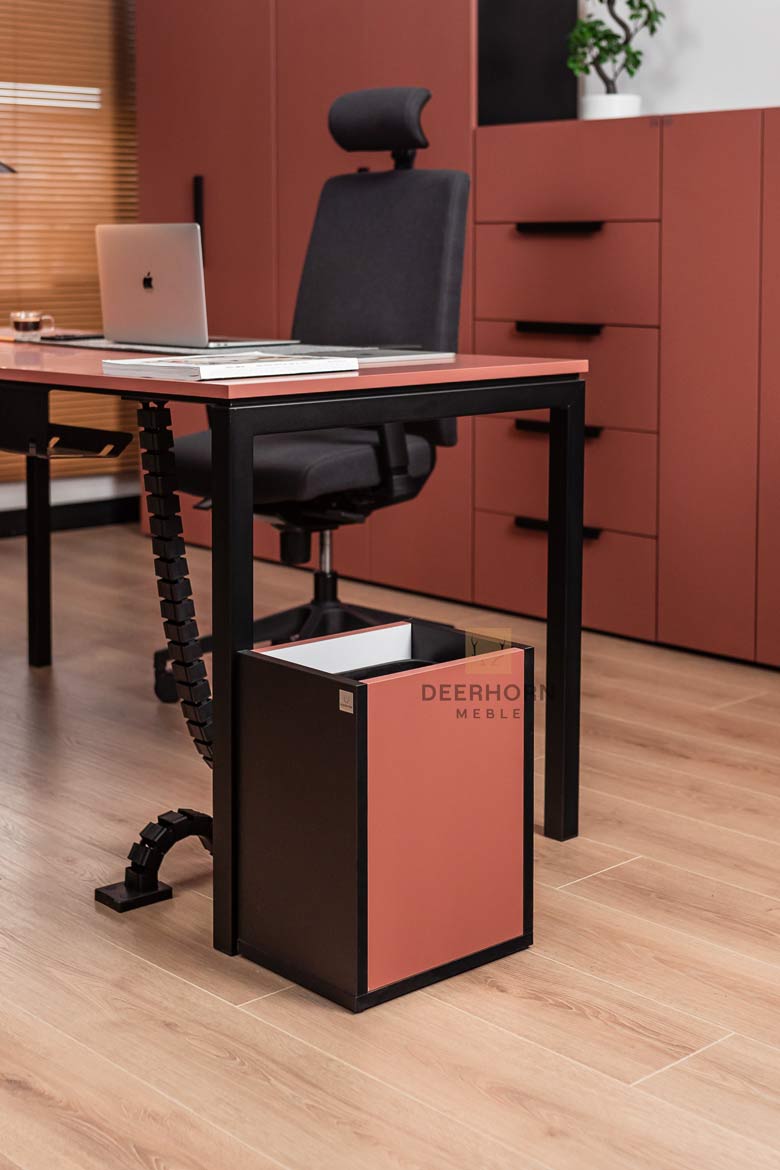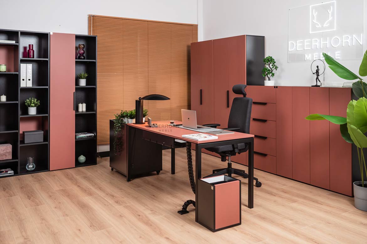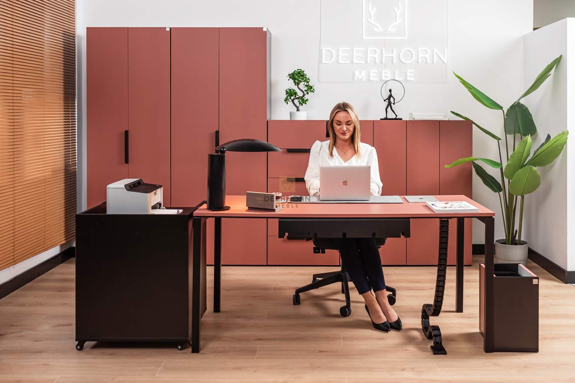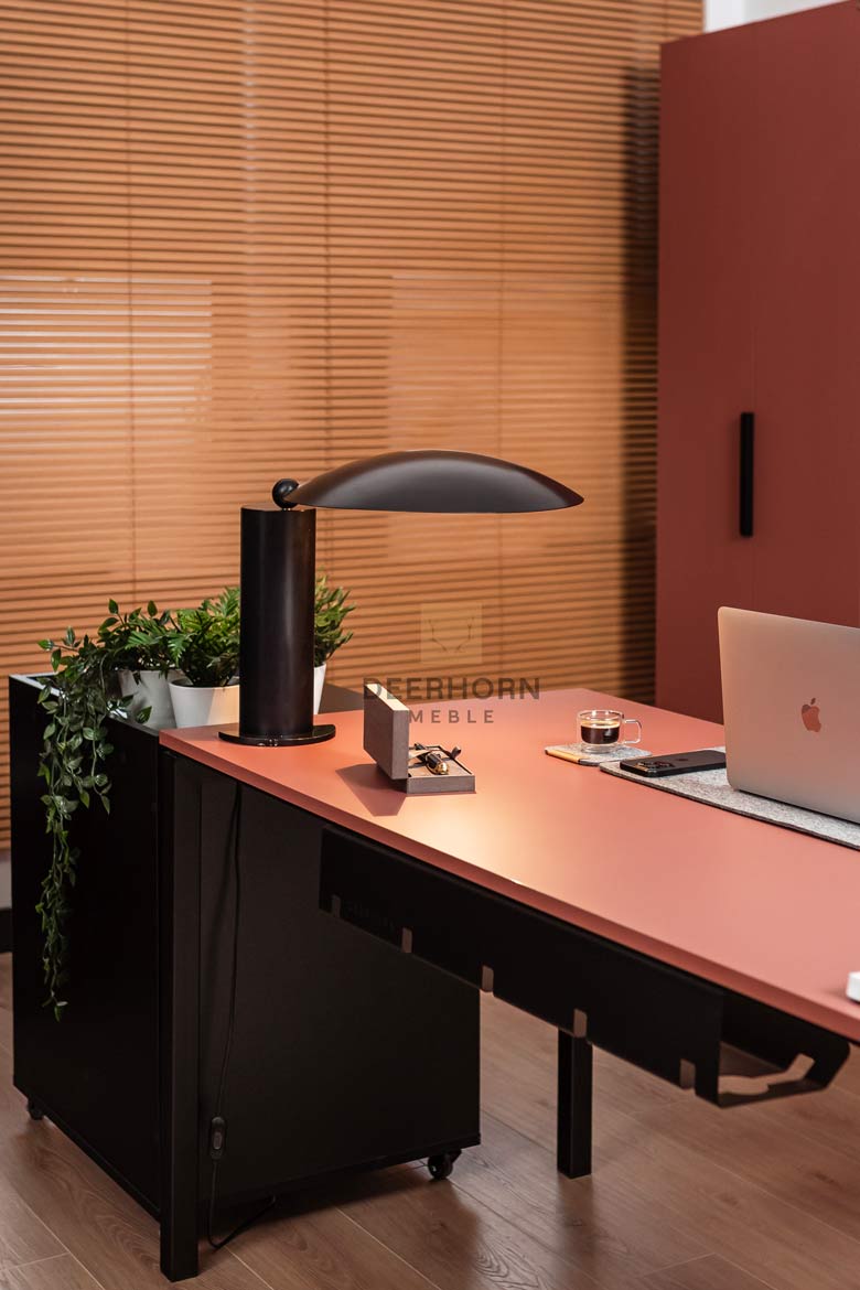 Porządek na biurku to spokój w głowie. Dlatego to biurko z kolekcji Corporate zostało zaprojektowane tak, aby Twoja praca była wygodniejsza i lepiej zorganizowana. Ceglasty blat wnosi do biura świeżość i energię, a solidna czarna podstawa sprawia, że zyskujesz pewność stabilnego miejsca pracy.