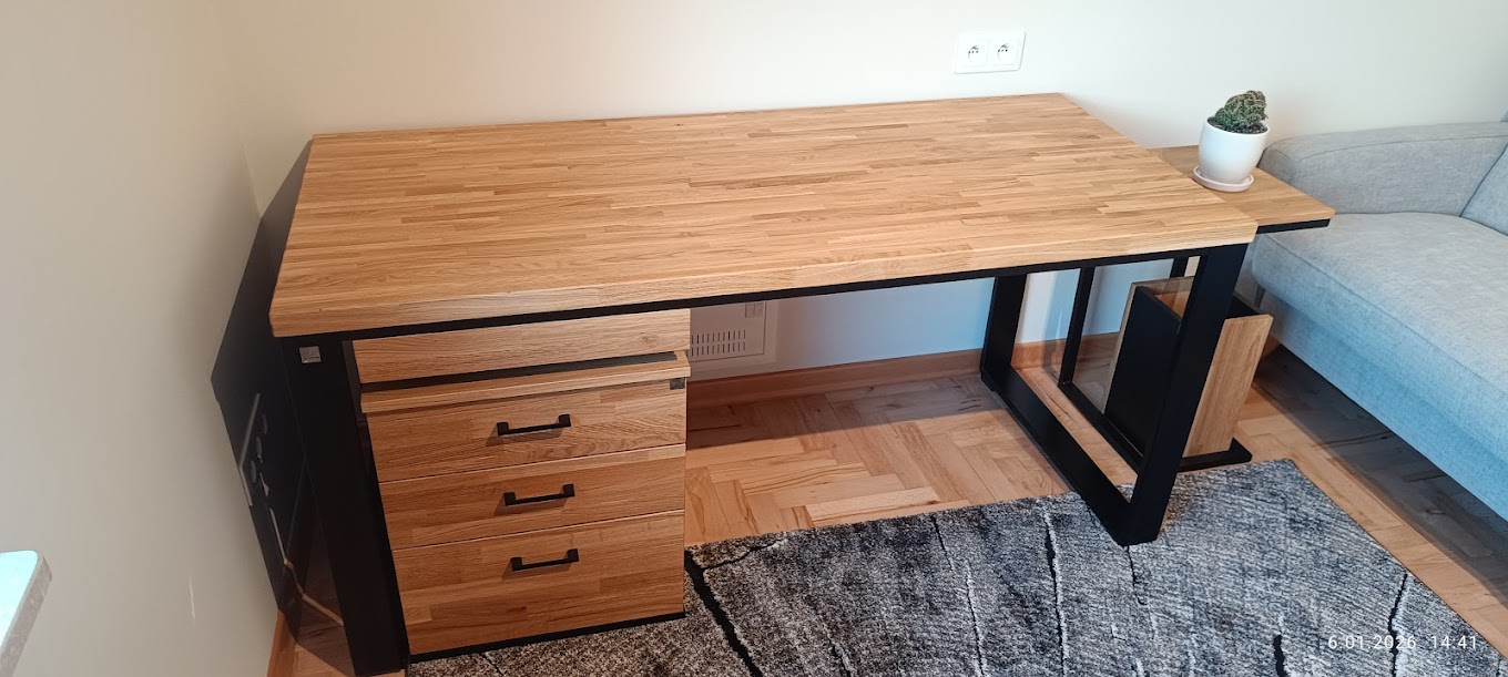 Biurko jest solidne i bardzo wygodne w użytkowaniu. Ma dużo miejsca do pracy, stabilną konstrukcję i estetyczny wygląd. Sprawdza się idealnie na co dzień — dokładnie to, czego potrzebowaliśmy.