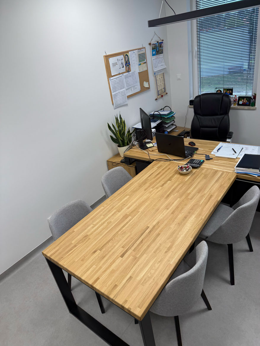 Proste biurko jako przedłużenie drugiego sprawdziło się idealnie. Dużo więcej miejsca do pracy, wszystko spójne wizualnie i bardzo wygodne na co dzień. Świetnie nadaje się też do spotkań – komfortowo mieszczą się przy nim wszyscy uczestnicy. Solidne, stabilne i dokładnie to, czego potrzebowaliśmy.