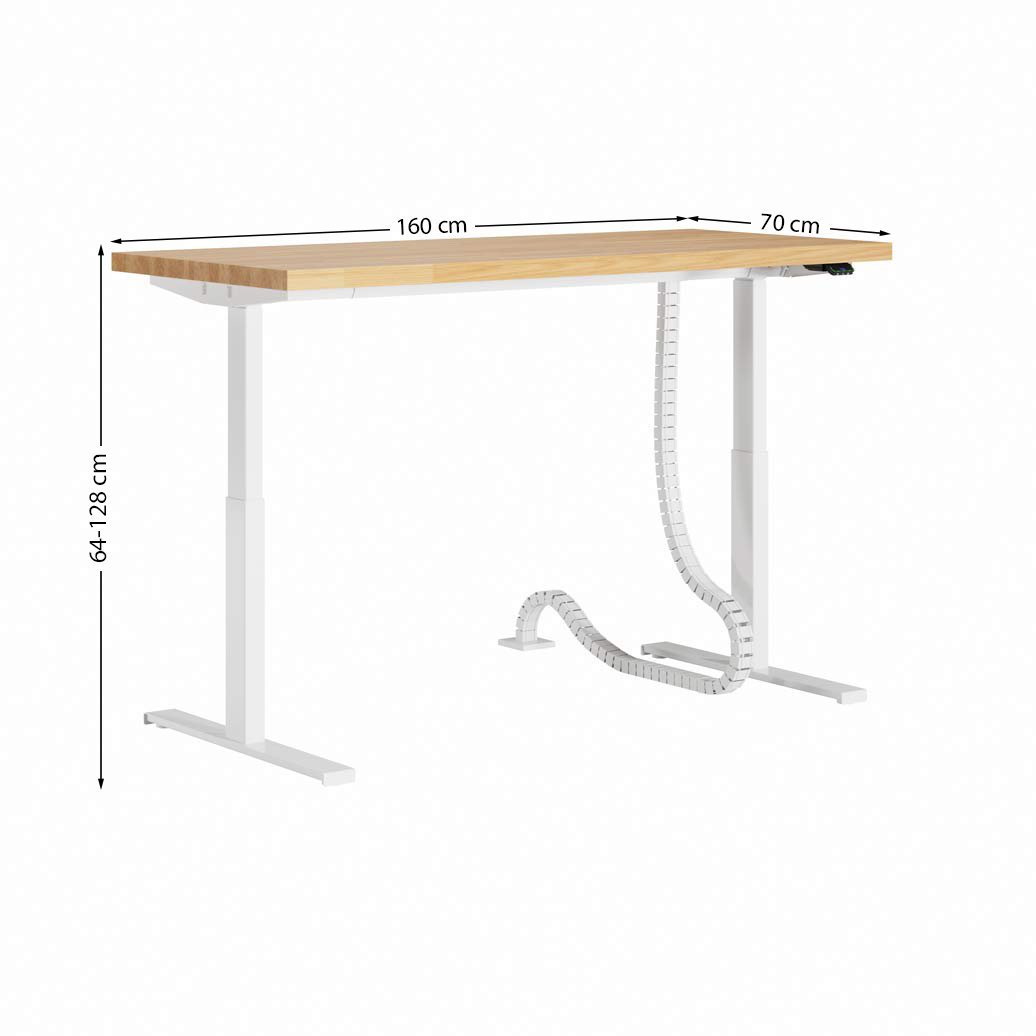Białe biurko z regulacją wysokości i drewnianym blatem 160x70cm