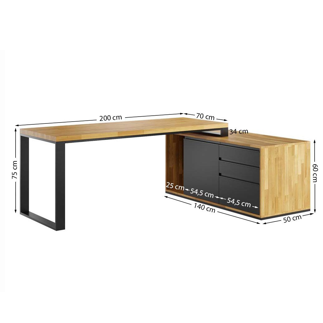 Biurko z szafką i szufladami. Funkcjonalne, naroże biurko z kontenerem 200×70