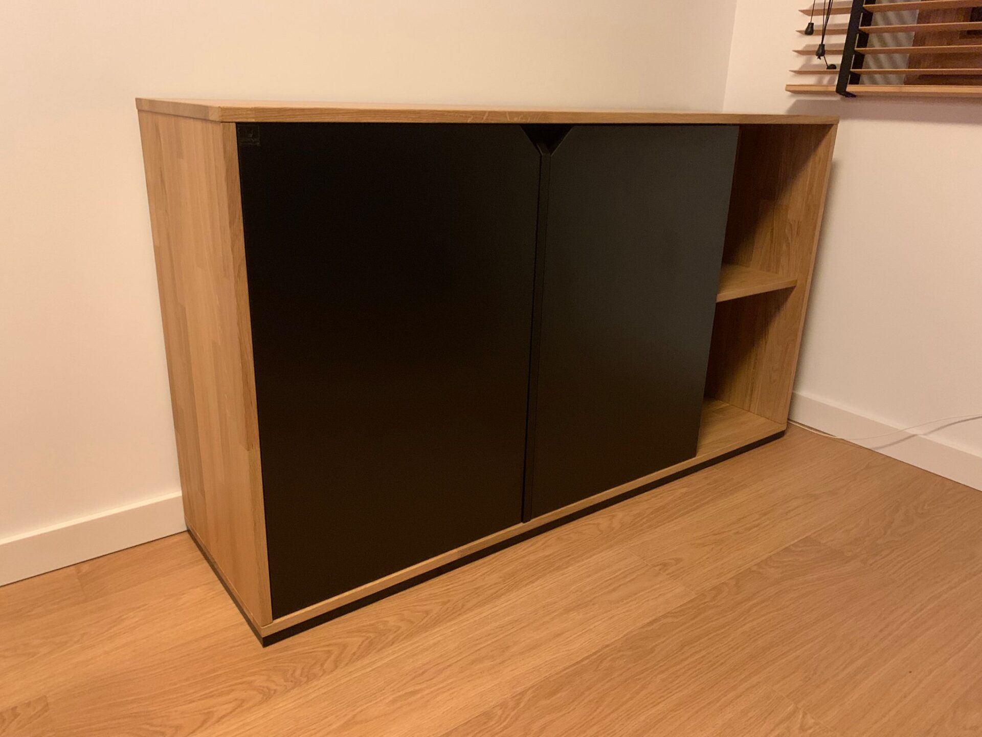 Komoda z szafkami i półkami jest bardzo funkcjonalna. Łączy miejsce do przechowywania z wygodnym dostępem do rzeczy, dzięki czemu łatwo utrzymać porządek. Wygląda estetycznie, jest solidna i dobrze wpisuje się w przestrzeń. Przemyślany mebel do codziennego użytku.