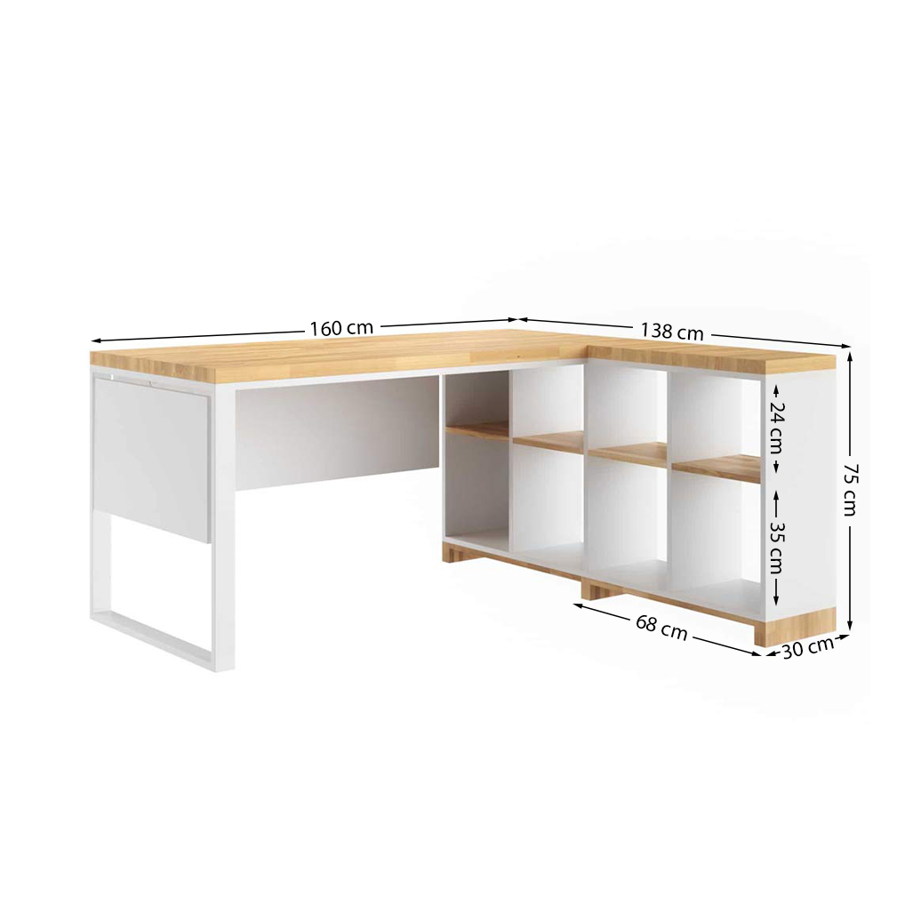 Biurowe biurko narożne drewno z metalem „modern office” prawe