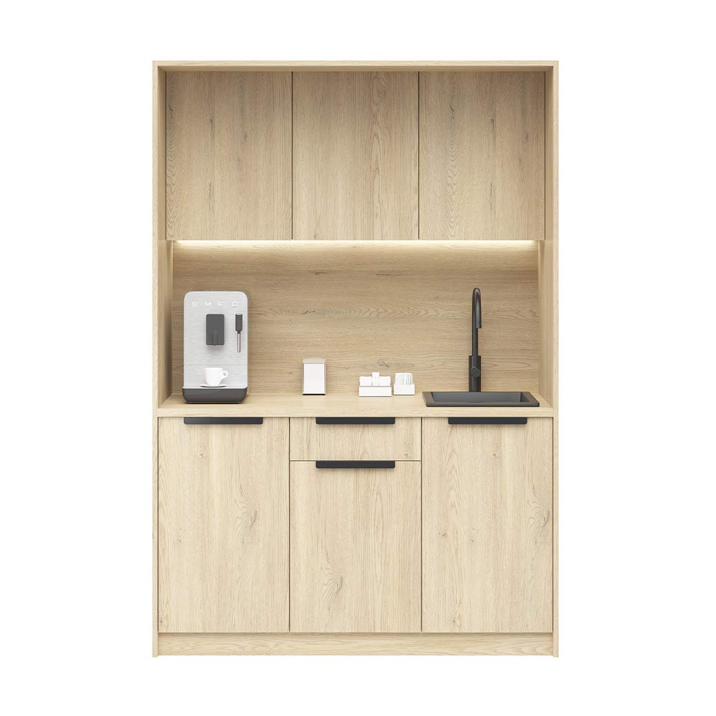 Wszystkie meble korporacyjne z tej kolekcji wykonano z odpornej na intensywne użytkowanie płyty meblowej, która lepiej znosi codzienny nacisk, tarcie i ruch w biurze. Dzięki temu zachowują elegancki wygląd przez wiele lat, nawet w miejscach o dużym natężeniu pracy. Proste formy, wyraziste linie i spójna kolorystyka nadają biurom prestiżowego charakteru.