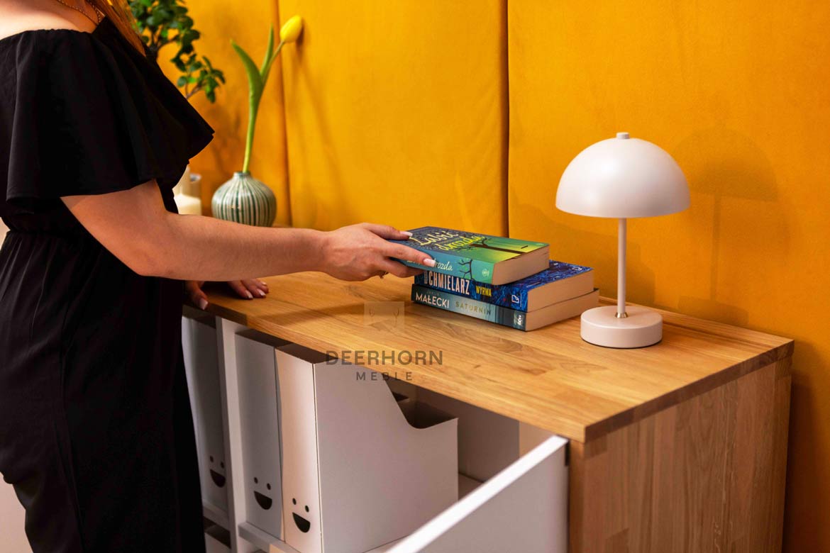 Komoda drewniana, pojemna z półkami na segregatory i dokumenty