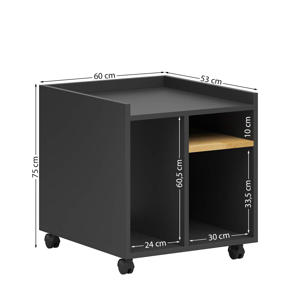 Szafka pod drukarkę z drewnianą półką pomoże Ci lepiej zorganizować przestrzeń i ułatwi codzienną pracę. Drukarka zawsze pozostaje w zasięgu ręki, a papier i akcesoria mają swoje miejsce. Niska konstrukcja zmieści się pod biurkiem lub obok stanowiska, a kółka pozwalają łatwo przesuwać szafkę tam, gdzie jej potrzebujesz. Drewniana półka zapewnia dodatkową przestrzeń, która bez problemu utrzyma dokumenty, sprzęt czy inne biurowe drobiazgi. To praktyczne rozwiązanie, które oszczędza czas i zwiększa wygodę pracy.
