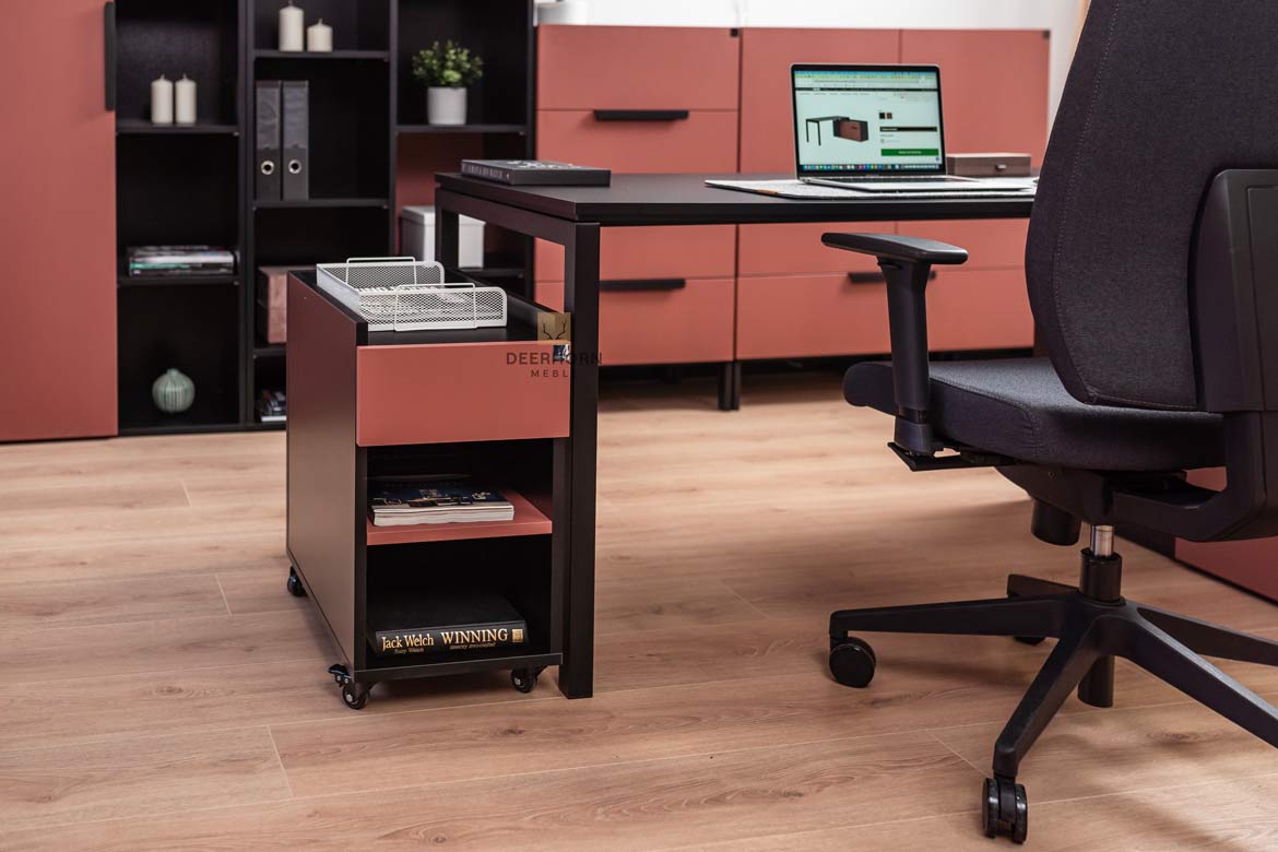W kolekcji znajdziesz wszystko, co potrzebne do nowoczesnego biura – regały biurowe na dokumenty, pojemne szafy biurowe na sprzęt i rzeczy osobiste, biurka (klasyczne, narożne, z regulacją wysokości), kontenerki, komody, szafki pod drukarkę, meble niskie i wysokie, a także elementy do stref relaksu. Każdy element pasuje do pozostałych – proporcjami, kolorem i funkcją – co eliminuje problem łączenia mebli z różnych serii.