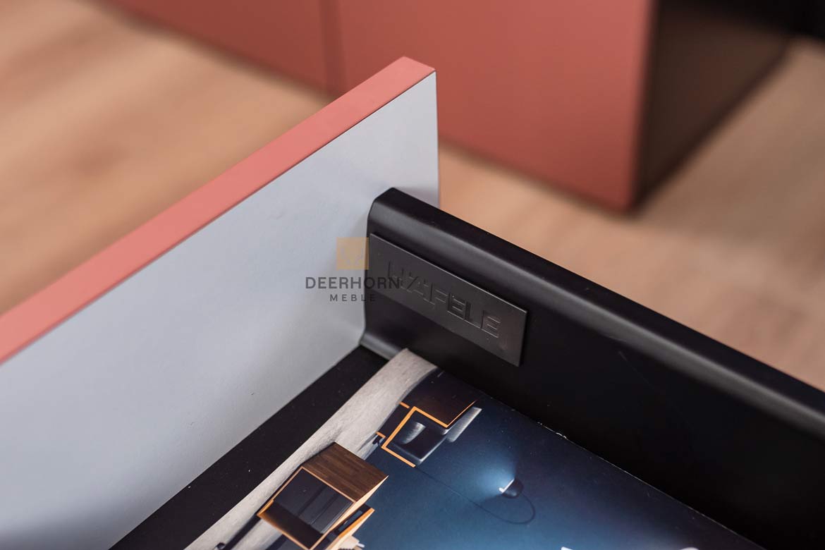 Wszystkie meble korporacyjne z tej kolekcji wykonano z odpornej na intensywne użytkowanie płyty meblowej, która lepiej znosi codzienny nacisk, tarcie i ruch w biurze. Dzięki temu zachowują elegancki wygląd przez wiele lat, nawet w miejscach o dużym natężeniu pracy. Proste formy, wyraziste linie i spójna kolorystyka nadają biurom prestiżowego charakteru.