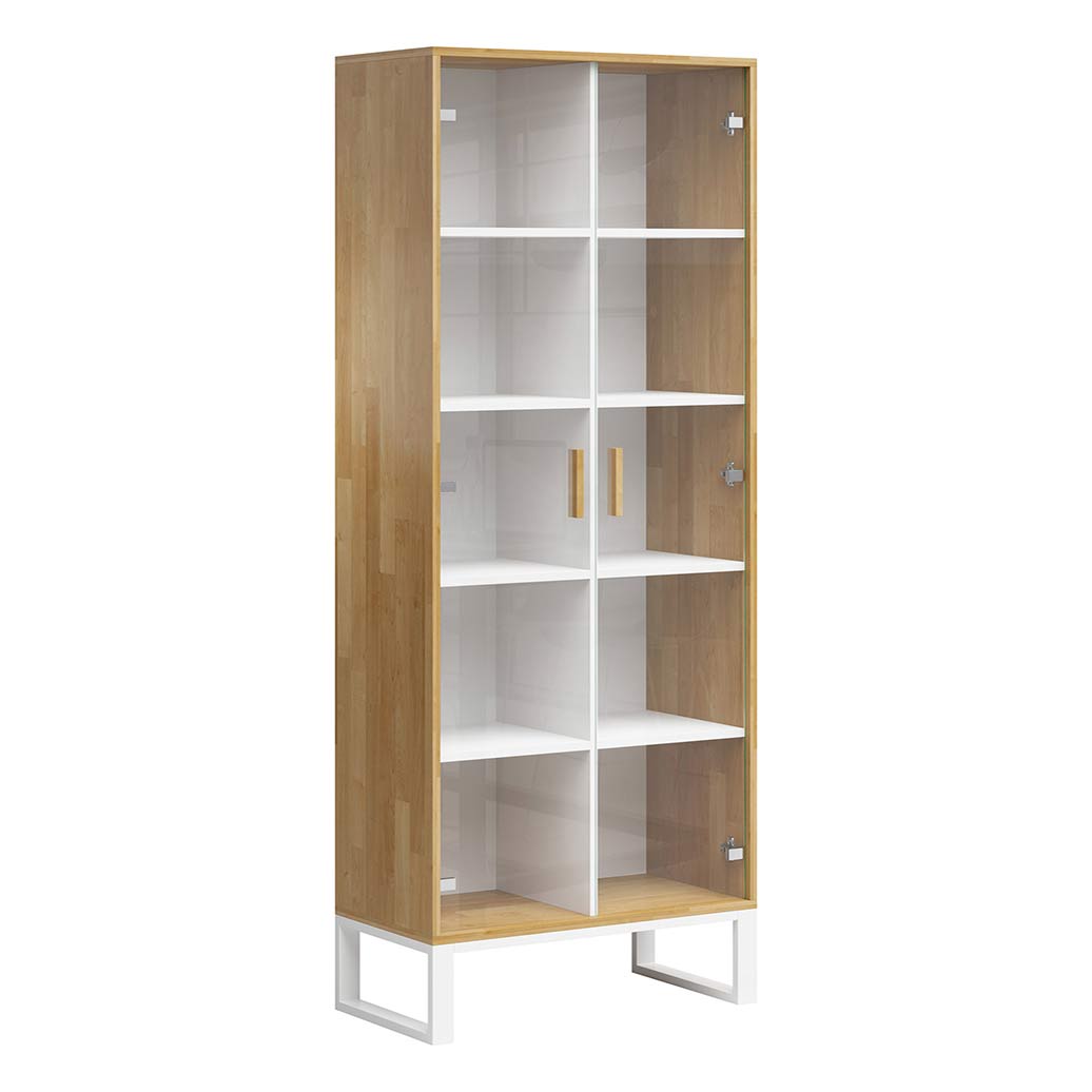 Nowoczesna witryna na dokumenty biała do biura i salonu na metalowych nogach