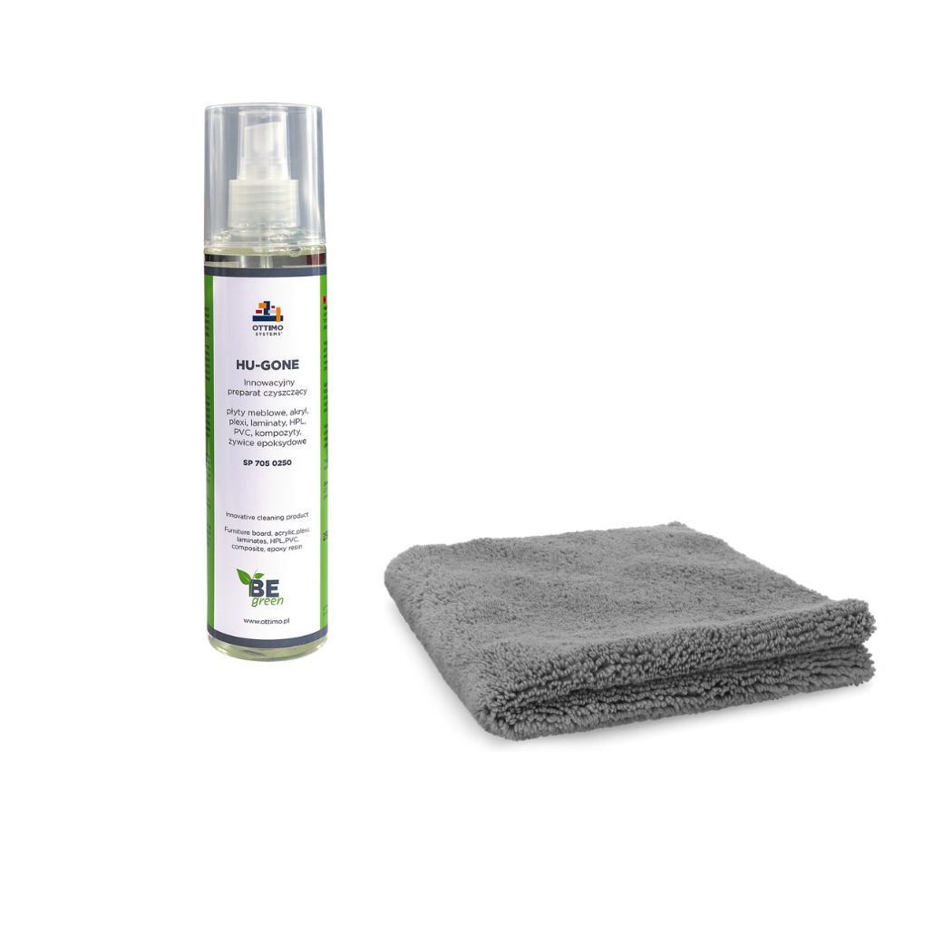 Płyn, preparat do czyszczenia mebli, płyt meblowych, laminatów, HPL, PVC + ściereczka z mikrofibry