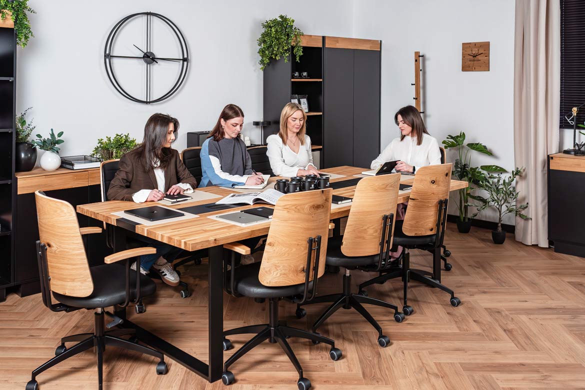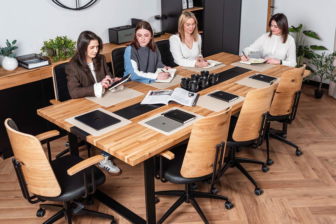 Stoły konferencyjne wykorzystywane jako biurka sprawdzają się u nas bardzo dobrze. Mają dużo miejsca do pracy, są stabilne i wygodne, a dzięki przelotkom na kable łatwo utrzymać porządek. Dodatkowo świetnie się prezentują i nadają biuru nowoczesny, profesjonalny wygląd