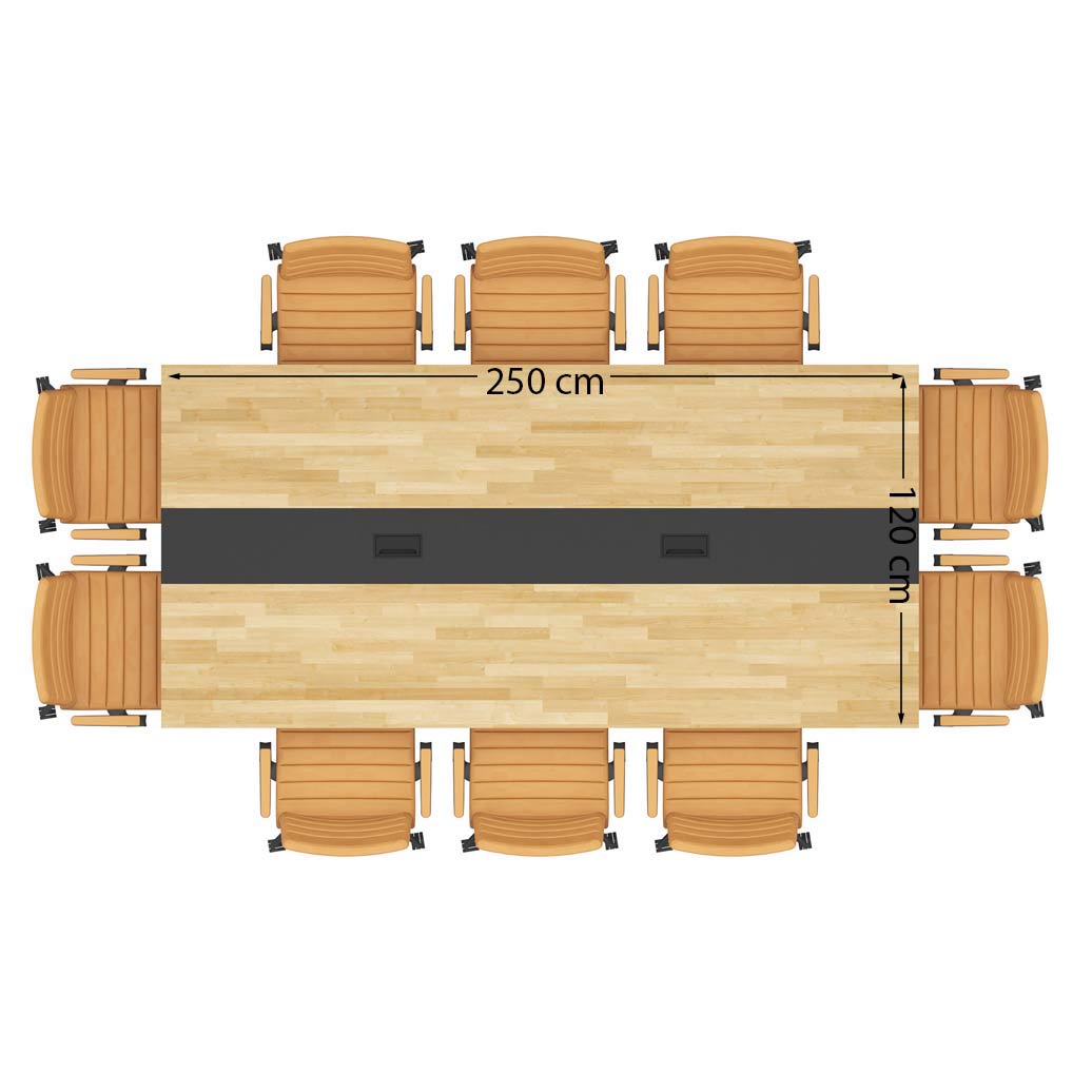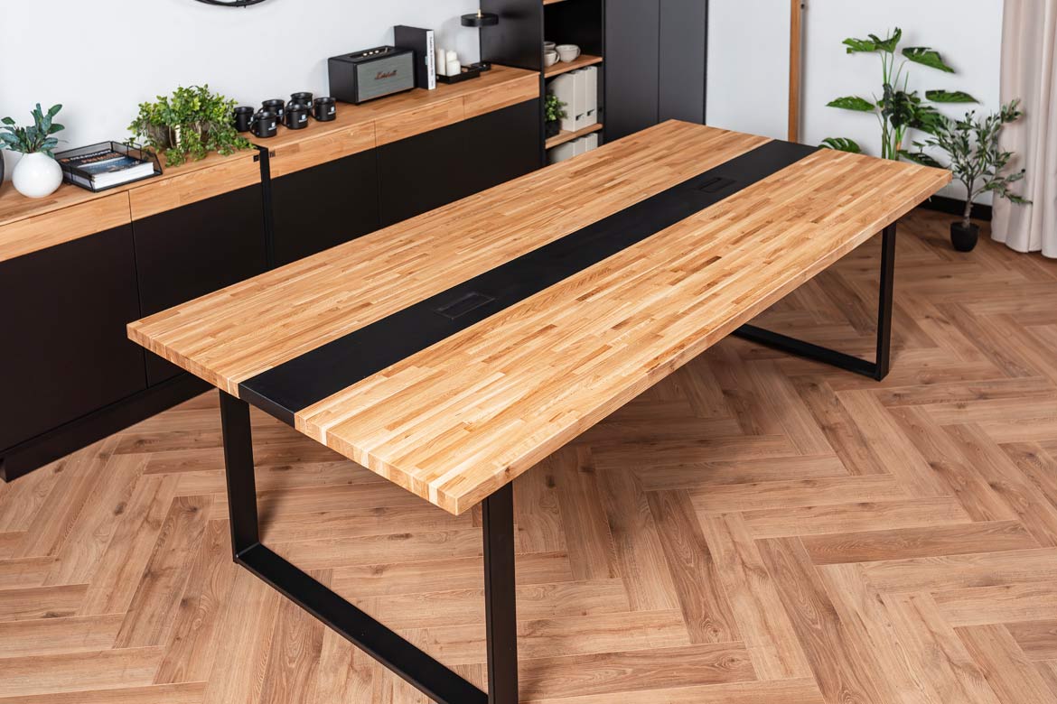 Stół konferencyjny z drewnianym blatem 250x120cm z otworem na kable