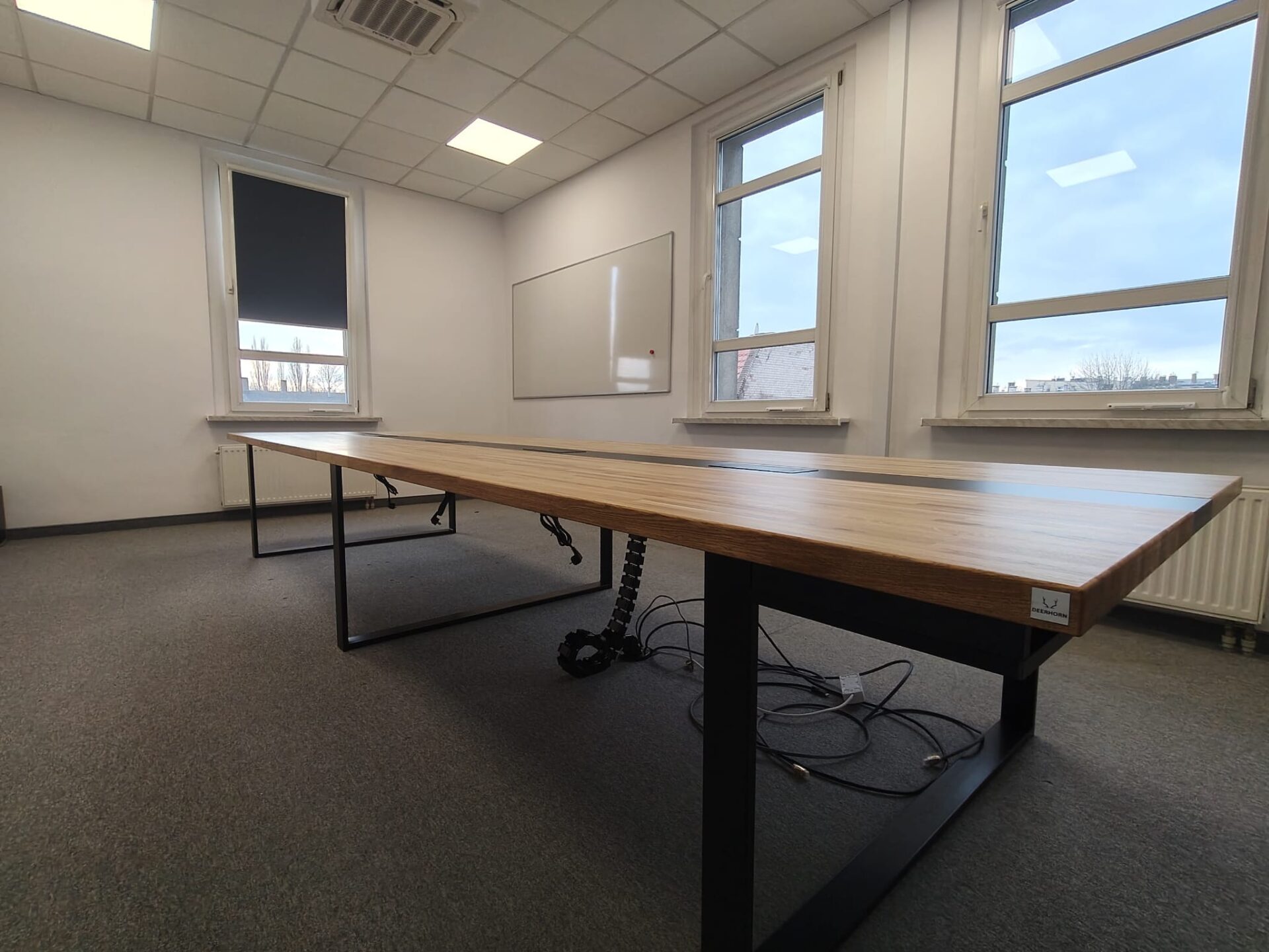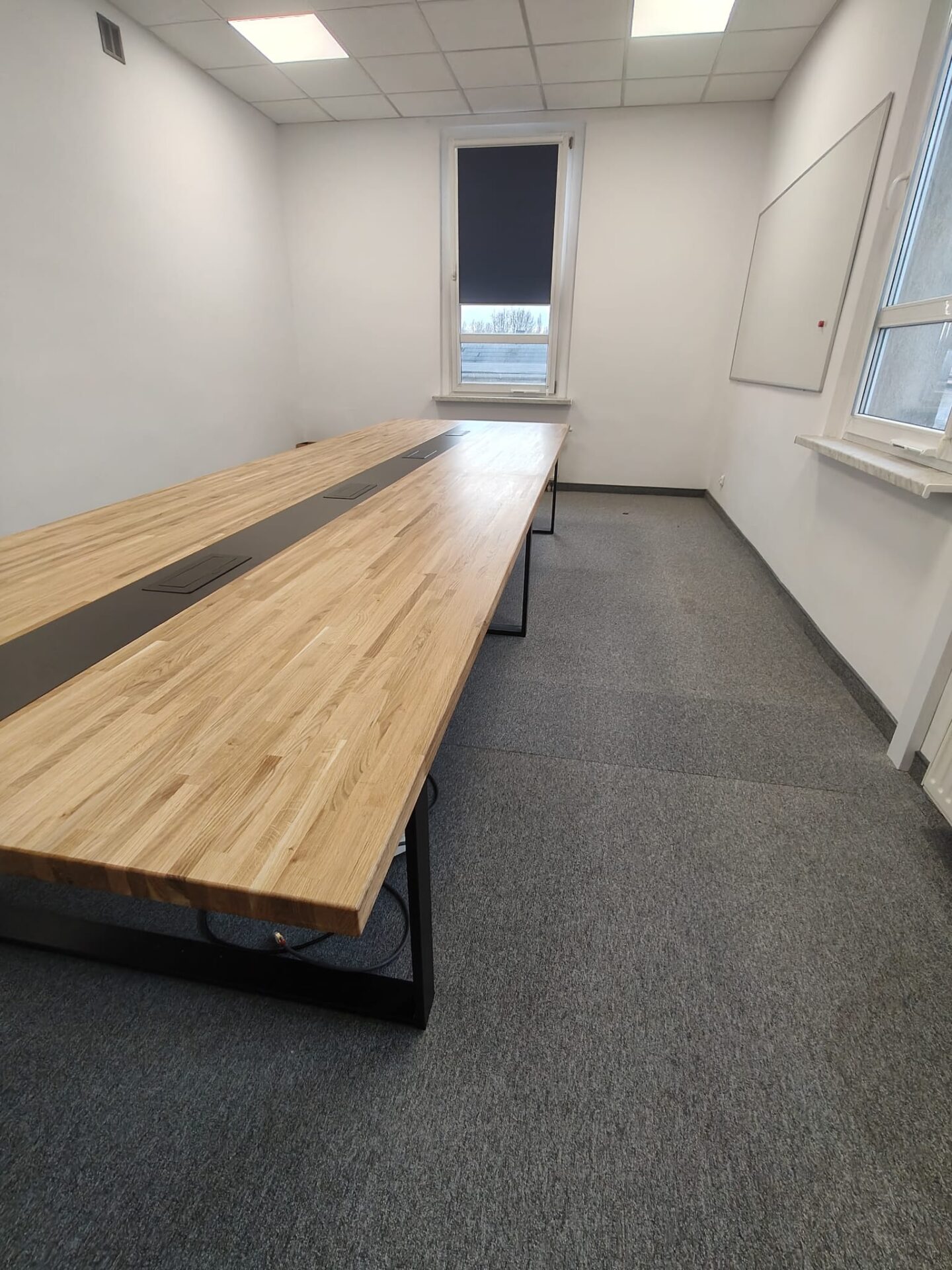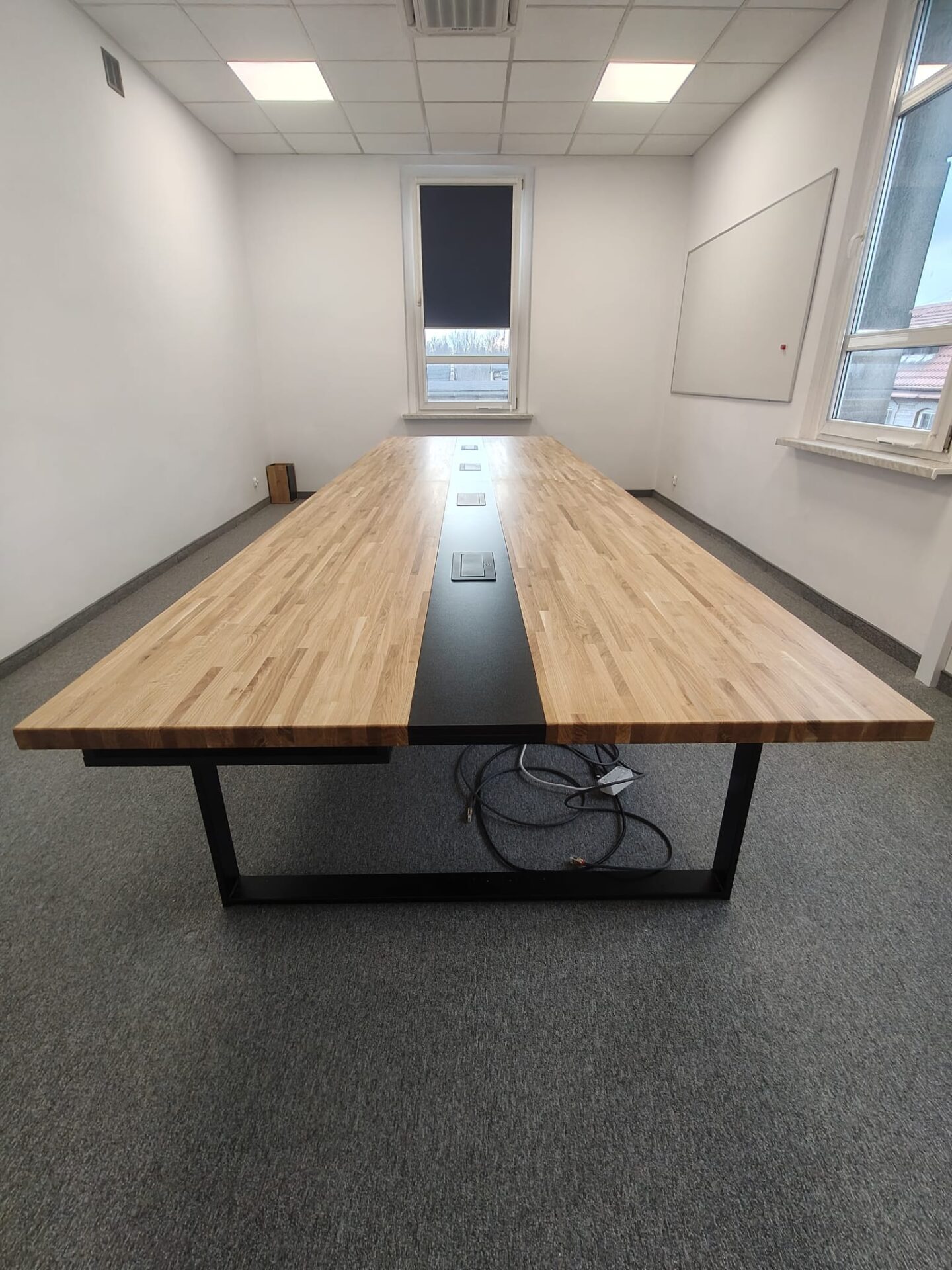 Przestronny stół konferencyjny 320×120 cm z otworami na kable