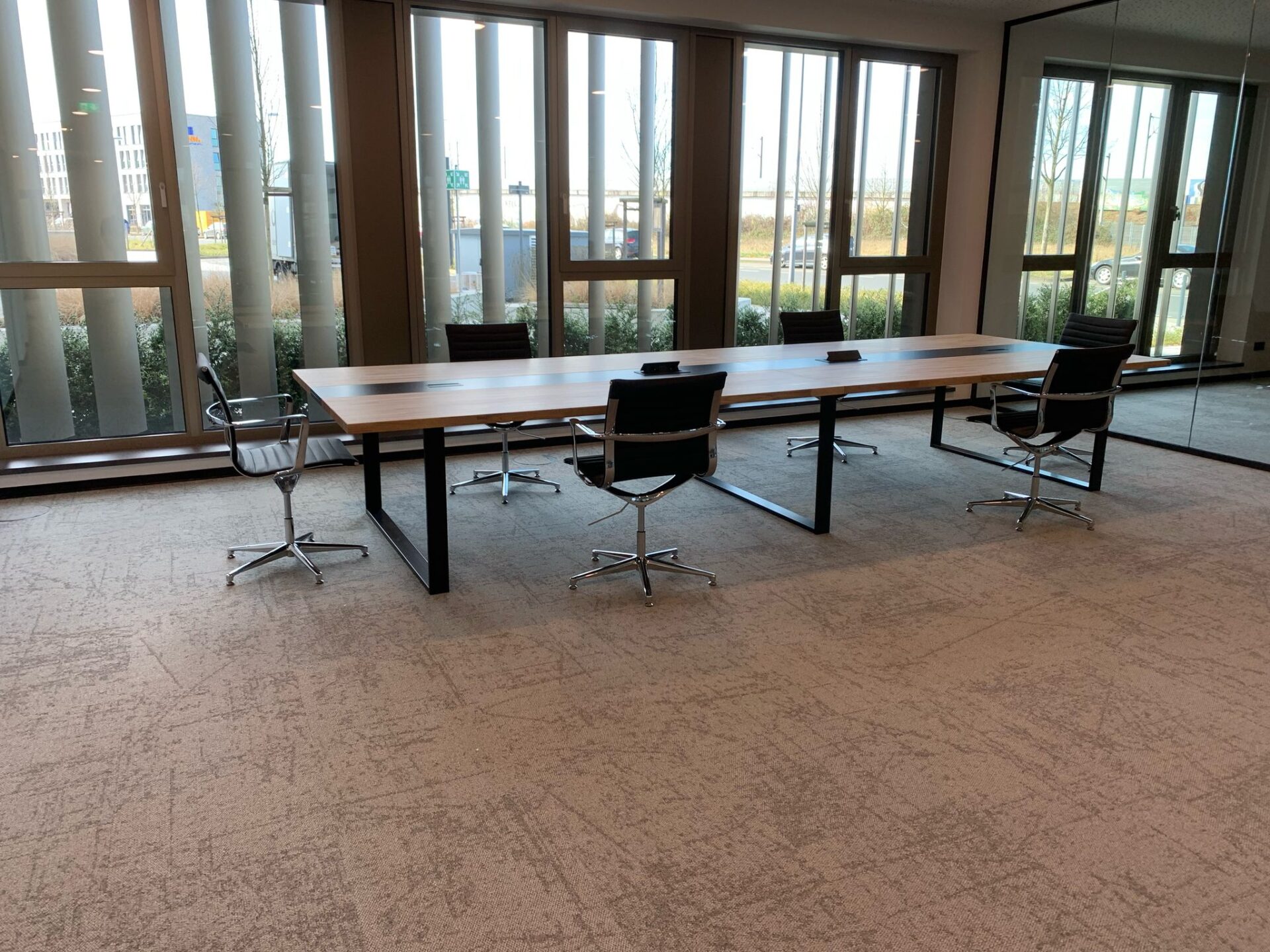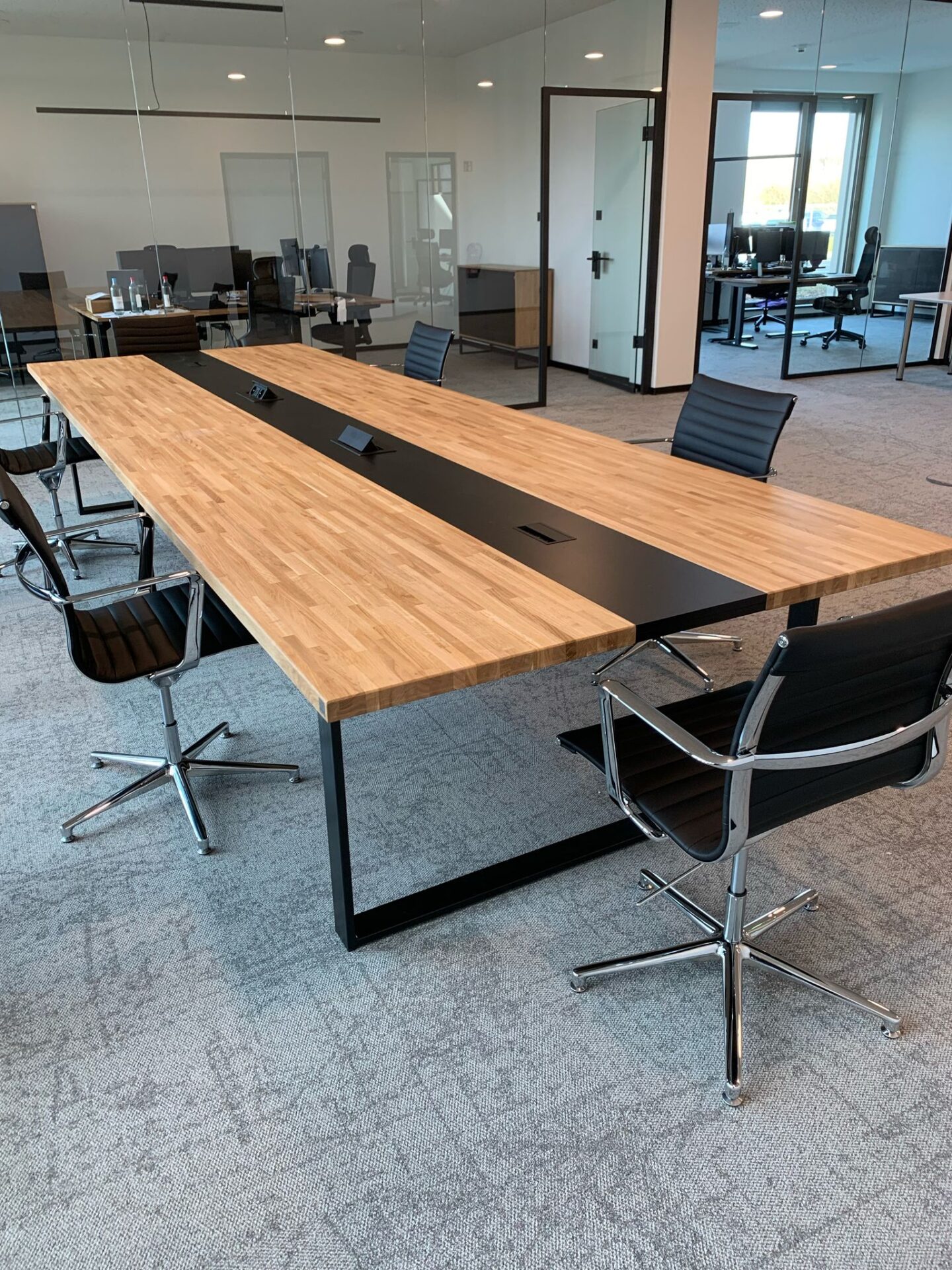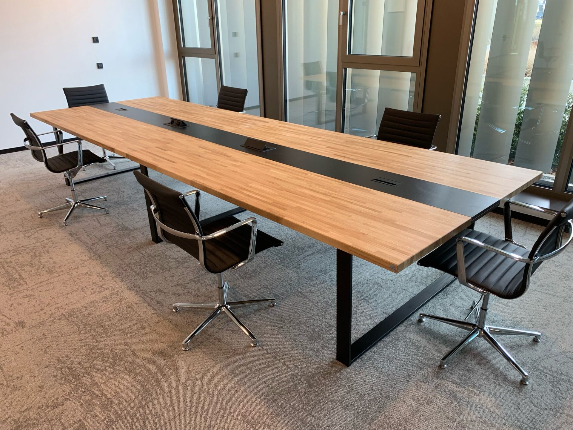 Przestronny stół konferencyjny 320×120 cm z otworami na kable