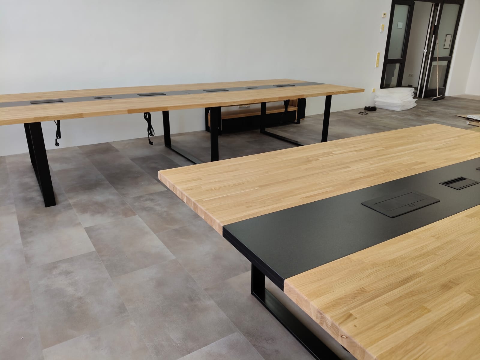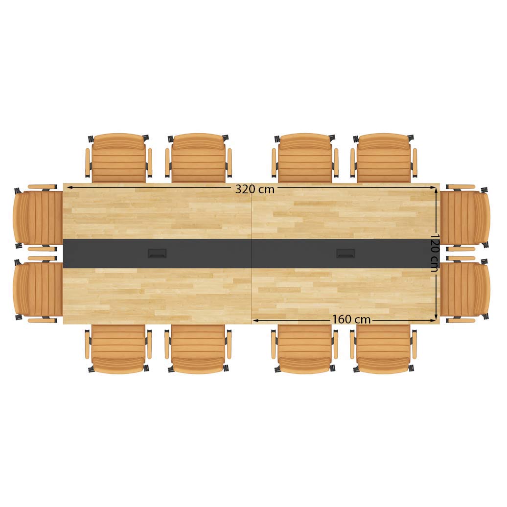 Stół konferencyjny z drewnianym blatem 320x120cm z otworami na kable