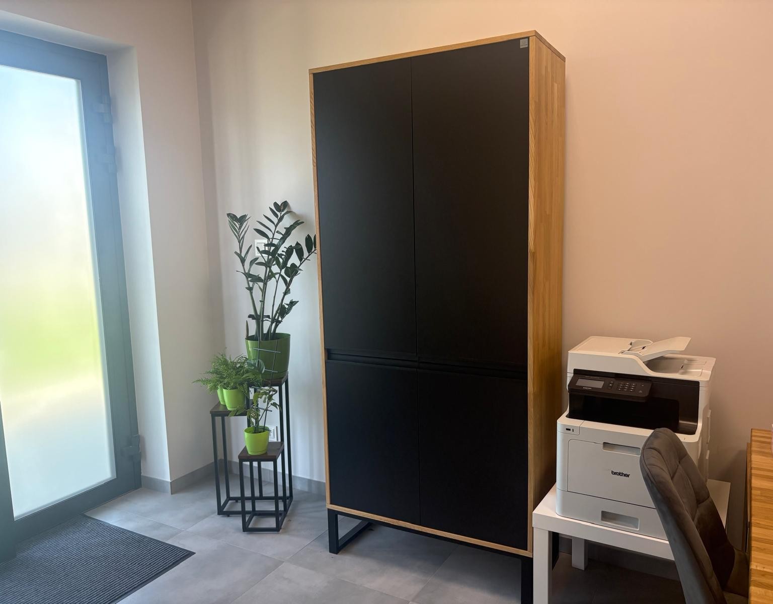 W końcu dokumenty mają swoje miejsce, a biuro przestało wyglądać jak magazyn. Szafa jest pojemna, solidna i bardzo dobrze zaprojektowana. Nic nie skrzypi, wszystko działa płynnie, a całość wygląda profesjonalnie. Taki mebel naprawdę robi różnicę w codziennej pracy.