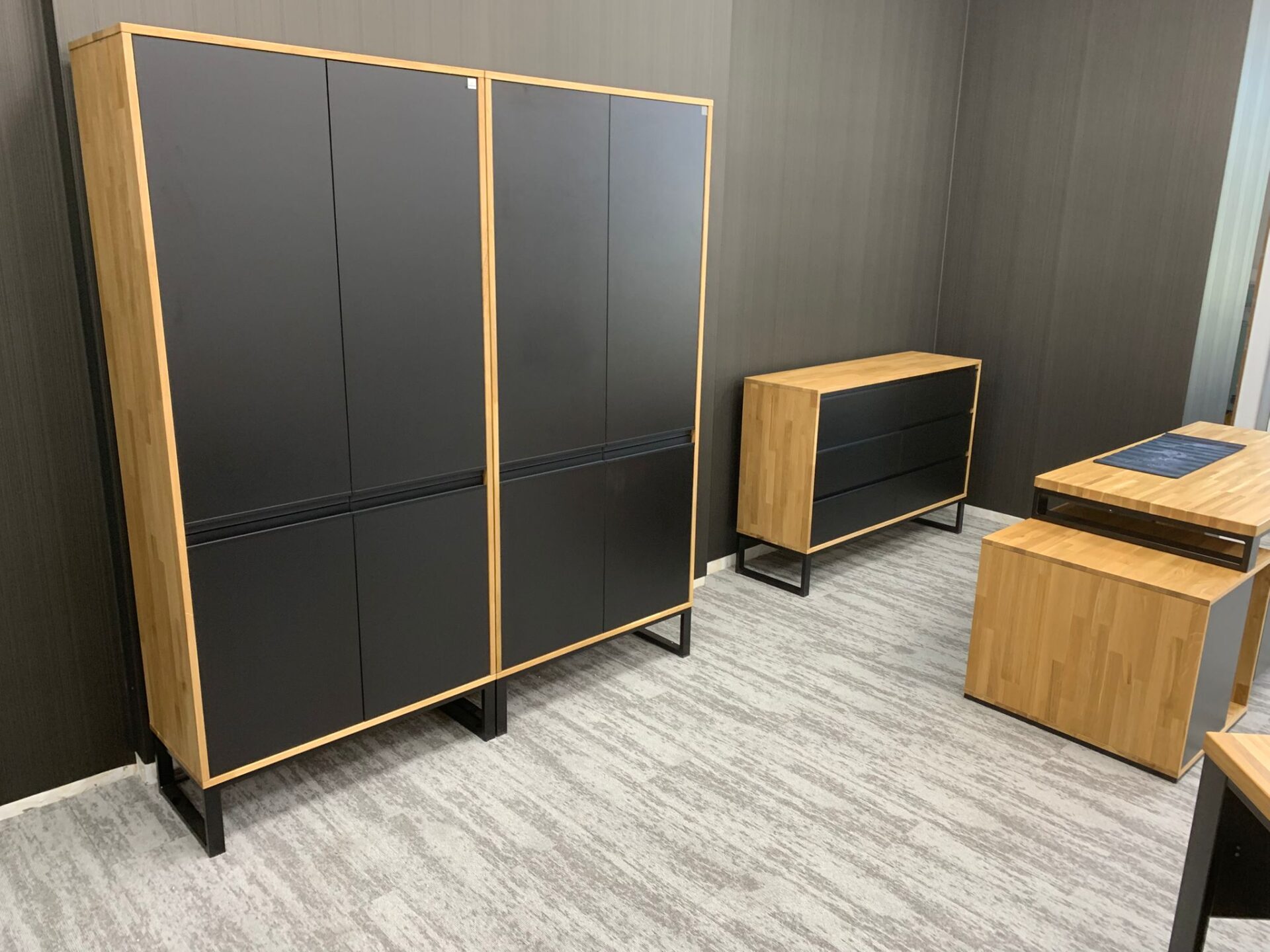 Biurowe meble z metalowym stelażem w kolorach: biały, czarny występują z dębowym drewnem. To połączenie, które góruje wśród naszych kolekcji, ale nie obawiamy się stawiać na nowości. Regały w stylu loft, komody z szufladami i półkami otrzymały inne uchwyty. Tradycyjne uchwyty w kontenerach ustąpiły miejsca aluminiowym, co wpłynęło oczywiście na stylistykę. Takie z pozoru niewielkie zmiany sprawiają jednak, że charakter kolekcji Loft Office Plus staje się nietuzinkowy.
