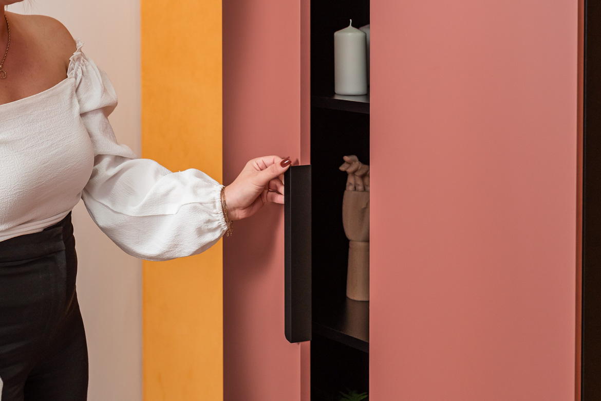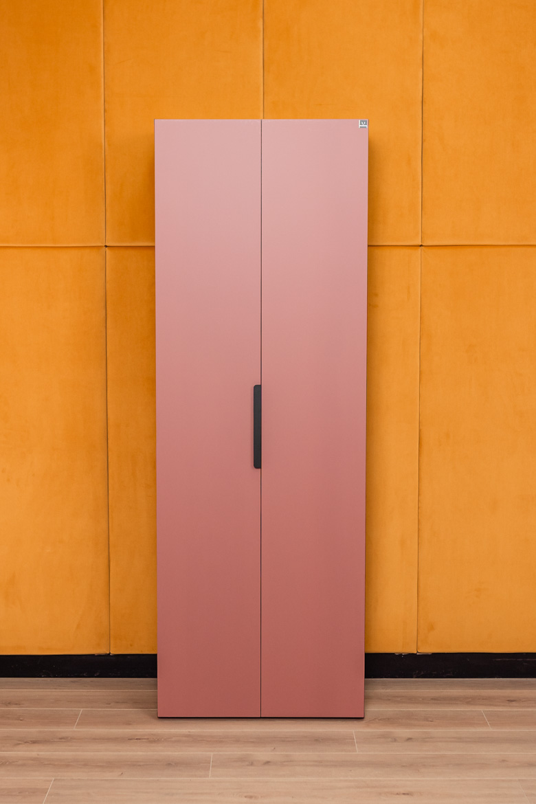 Wyobraź sobie mebel, który pozwala Ci zachować porządek, a jednocześnie wtapia się w przestrzeń biura z elegancją i lekkością. Szafa z pełnymi frontami, za którymi znajduje się aż dziesięć pojemnych półek – idealnych na dokumenty, akcesoria biurowe i wszystkie przedmioty, które nie muszą być na widoku, a chcesz je mieć pod ręką. Całość uzupełnia subtelny, aluminiowy uchwyt podkreślający minimalistyczny wygląd mebla. Połączenie matowej czerni z frontami w odcieniu cegły dodaje meblowi nowoczesnego i stonowanego wyrazu. To kolorystyka, która doskonale współgra z zielenią roślin i naturalnym światłem biura.