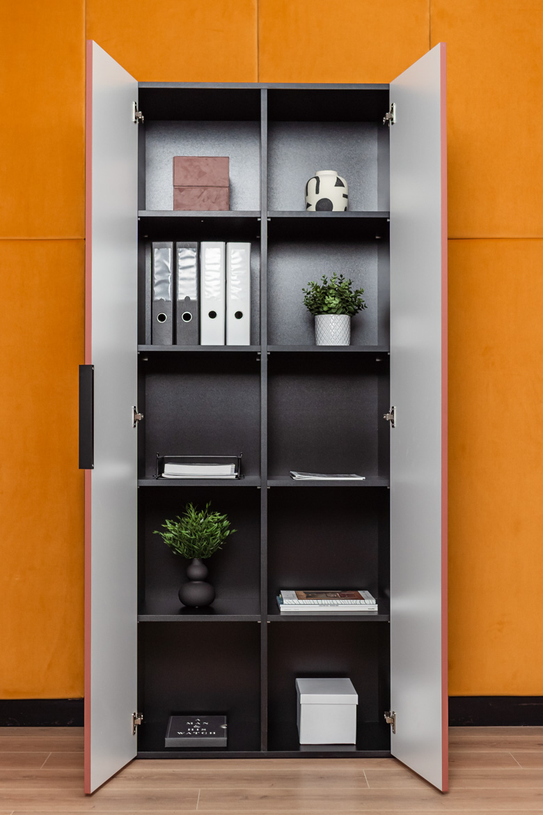 Ta szafa odnajdzie się w każdym miejscu – przy biurku, w strefie wspólnej, czy w gabinecie. Działa dyskretnie, ale skutecznie – pomaga utrzymać porządek i dobrze wpisuje się w nowoczesne, biurowe wnętrza.